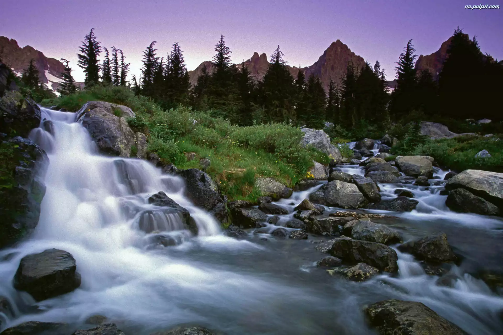 Drzewa, Kamienie, Rzeka, Wodospad, Góry Na Pulpit