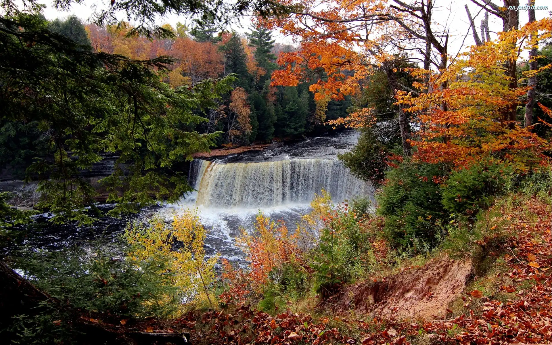 Liście, Jesień, Las Las, Kwiatki Wodospad, Krajobraz, Kamienie Sadzawka, Magiczny, Las Skał, Wodospad, Wśród Lasek, Zielona, Wiosna, Trawa Kamienie, Drewniany, Las, Mostek Lesie, Most, W Wodospad Liście, Wodospad, Kolorowe wysoki Wodospad Strumyk, Las, Drzewa Wodospad Jesień, Las