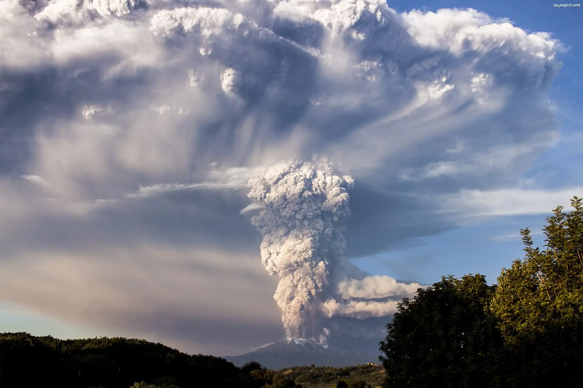 Drzewa, Erupcja, Wulkan, Dym Na Pulpit