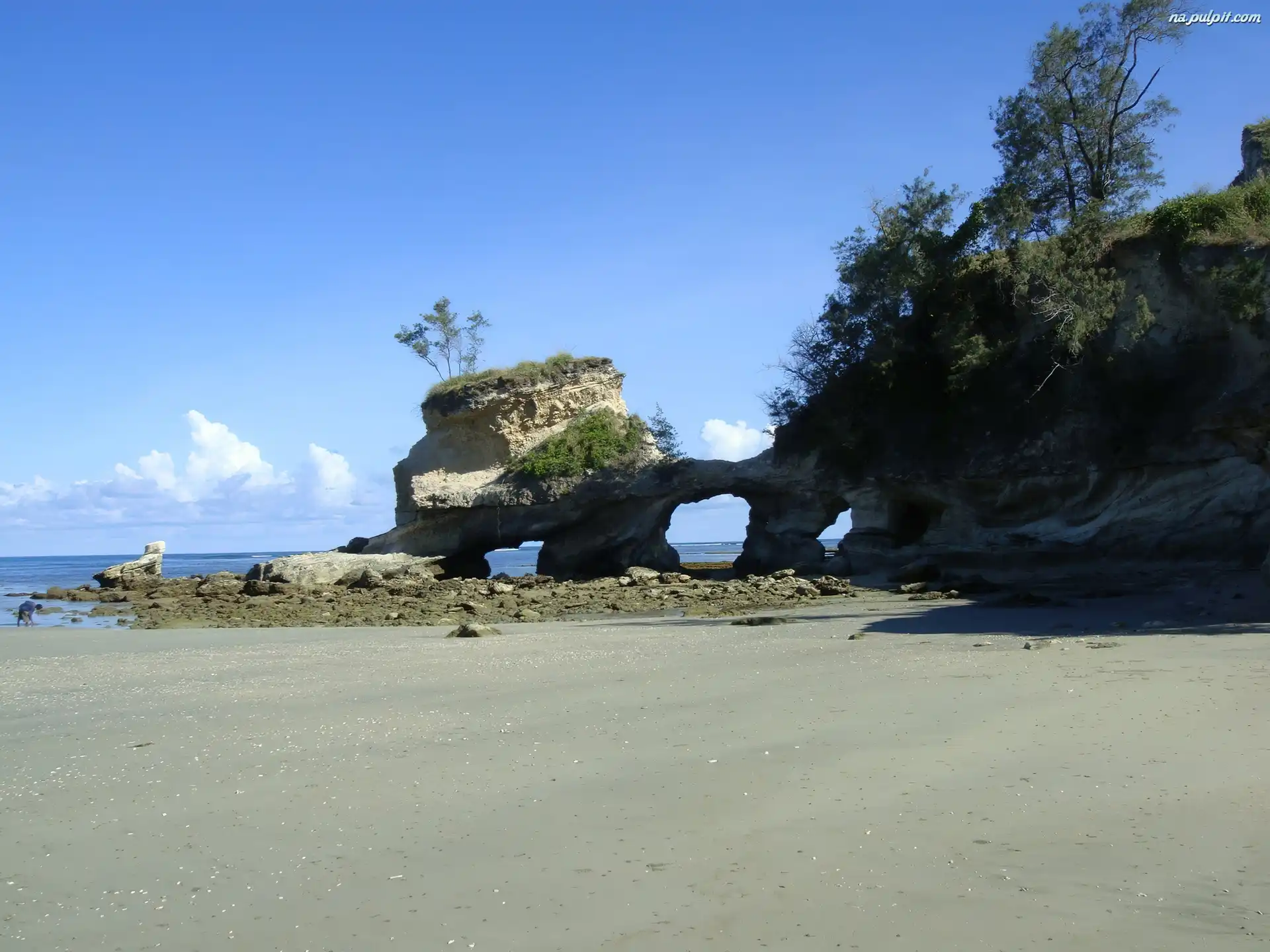 Drzewa, Kamienie, Skały, Wybrzeże, Plaża Na Pulpit