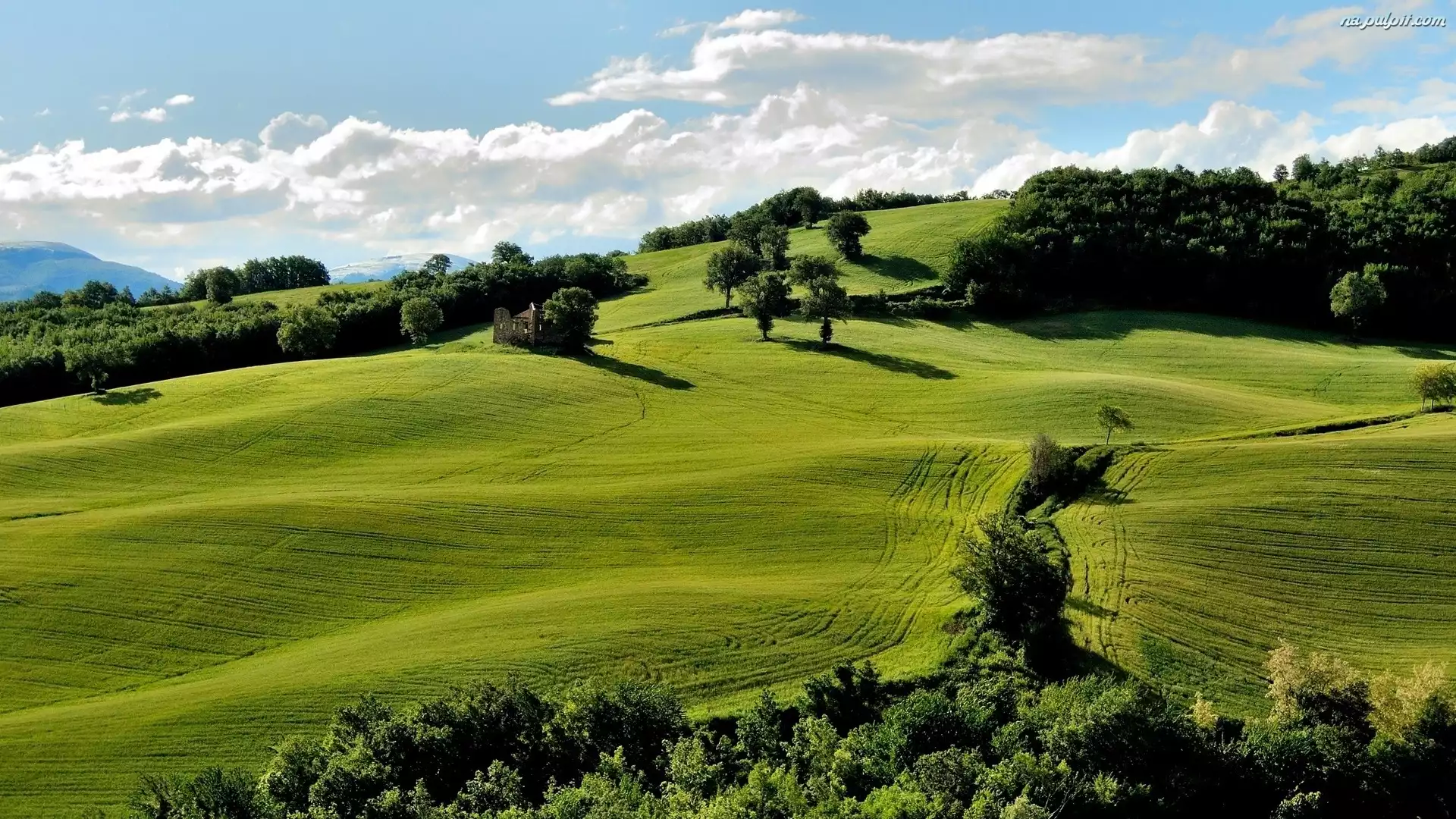 Drzewa, Łąki, Wzgórza, Pola Na Pulpit