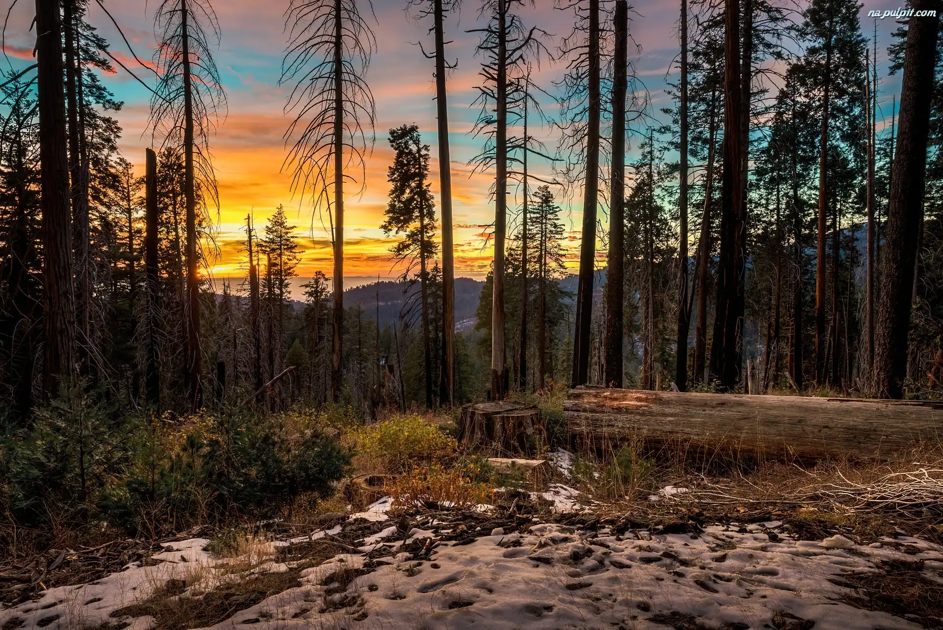 Drzewa, Las, Zachód Słońca Na Pulpit