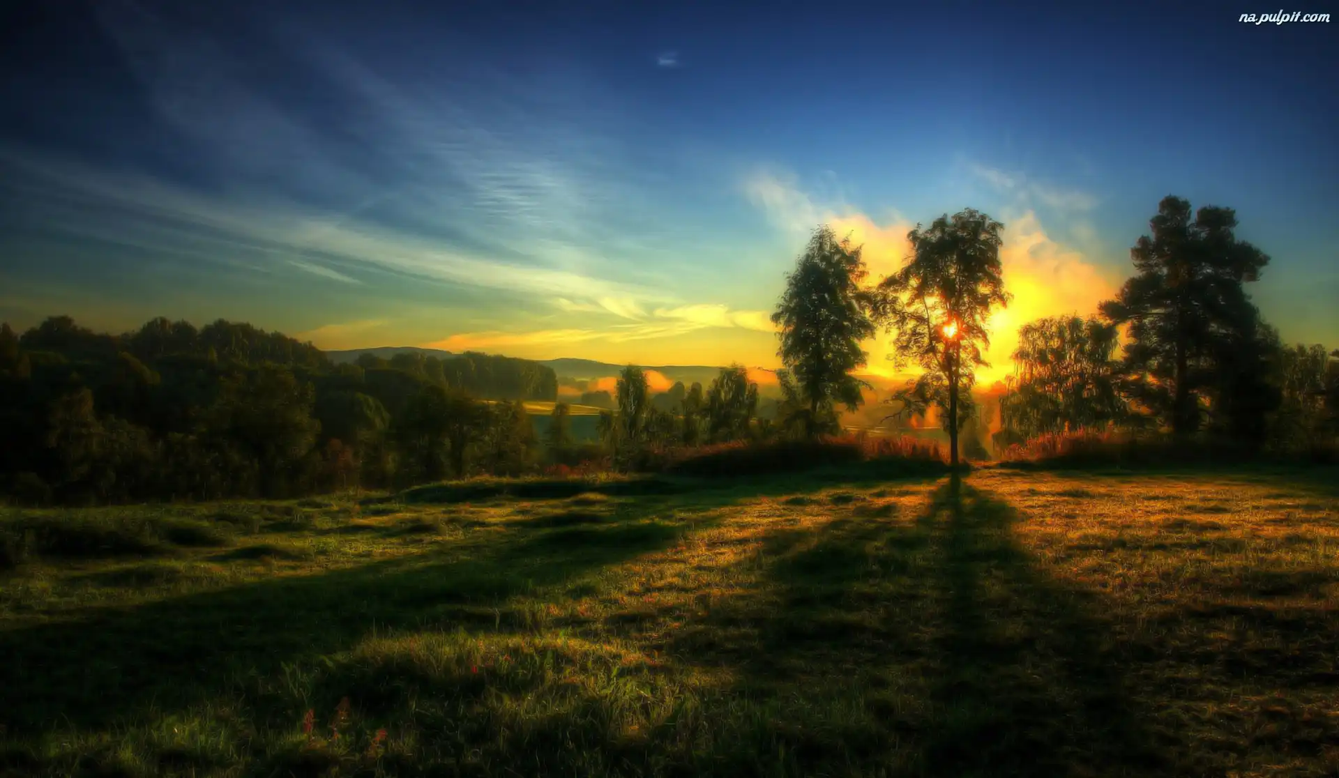 Drzewa, Słońca, Zachód, Łąki Na Pulpit