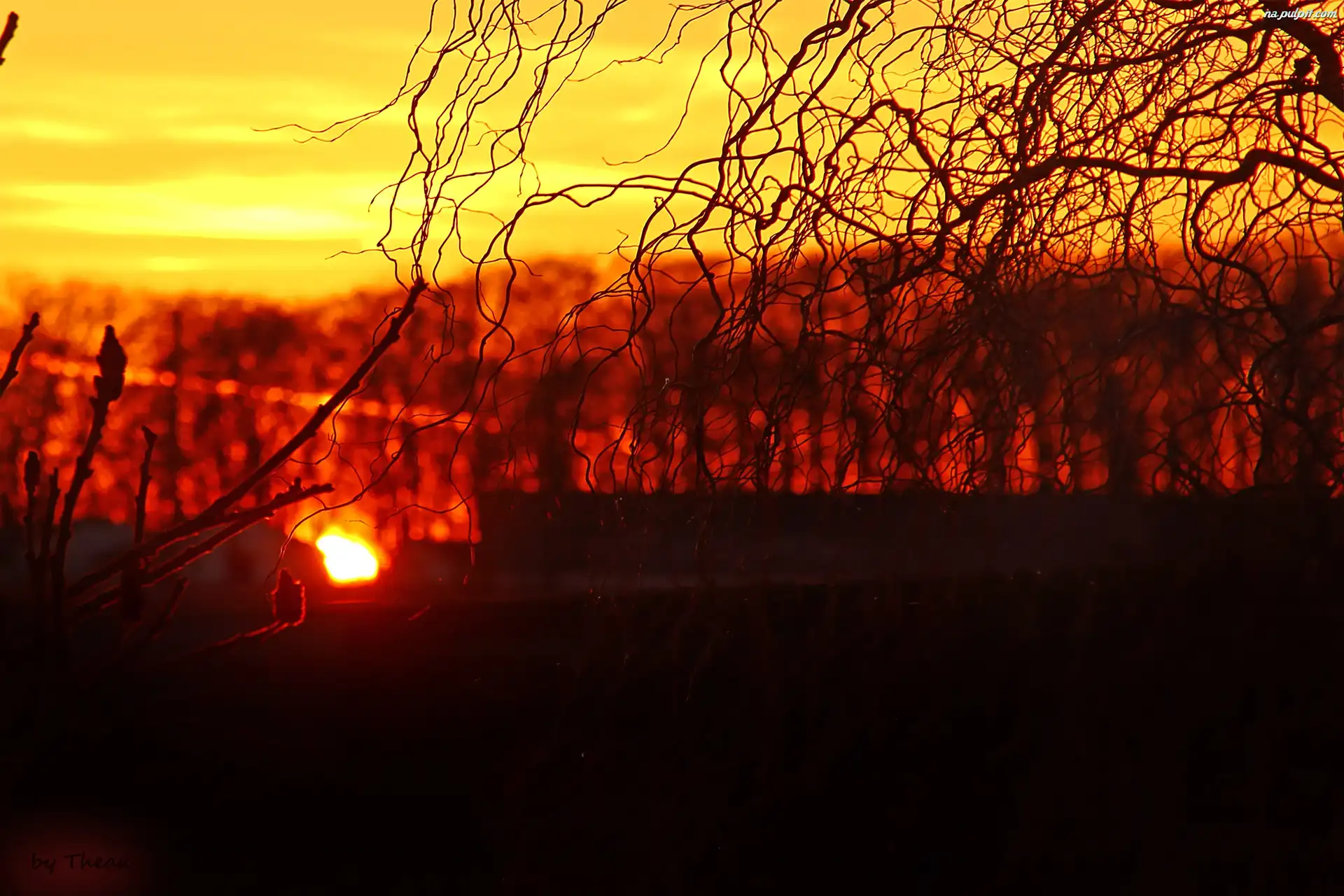 Drzewa, Słońca, Zachód, Budynki Na Pulpit