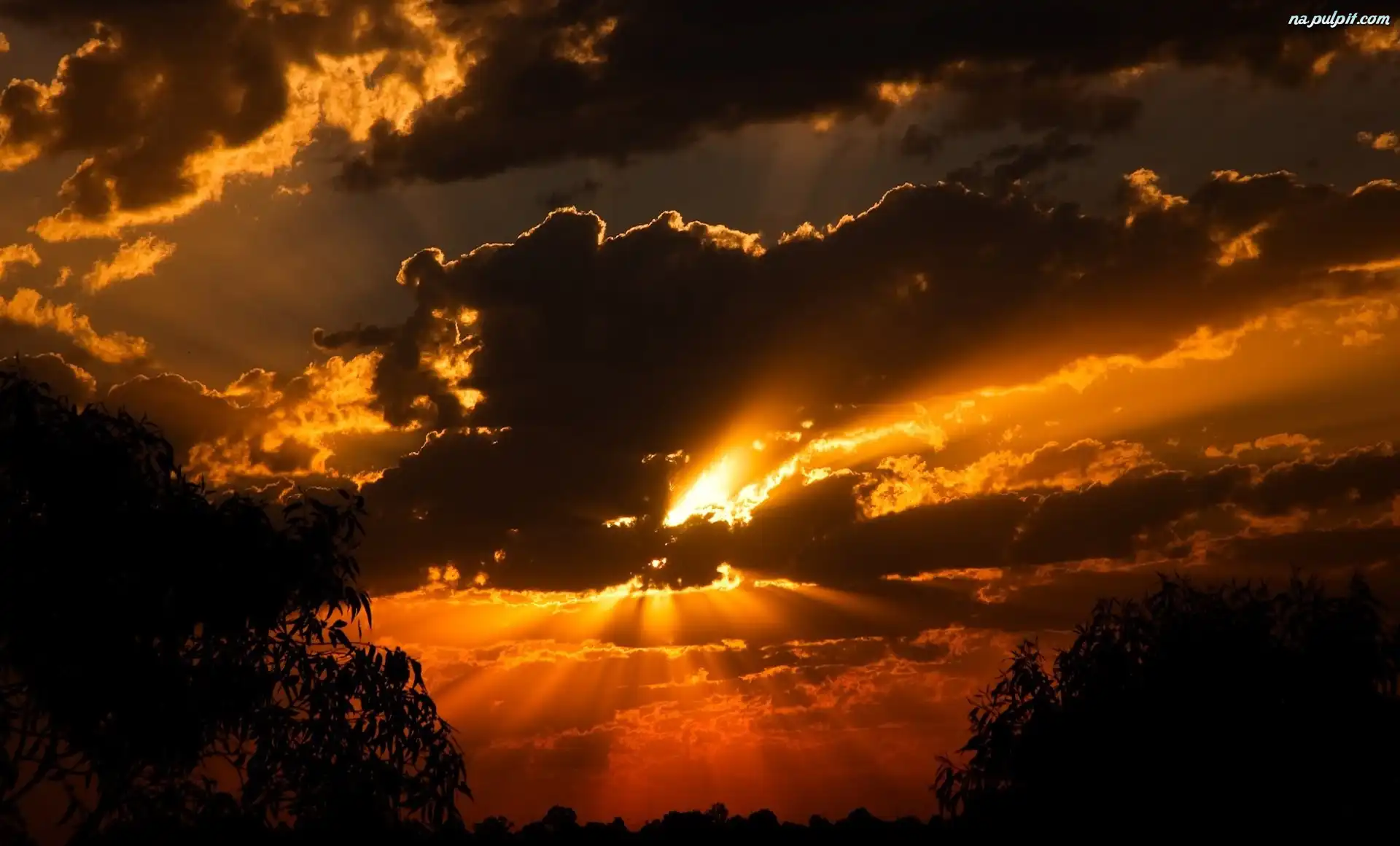 Drzewa, Słońca, Zachód, Chmury Na Pulpit