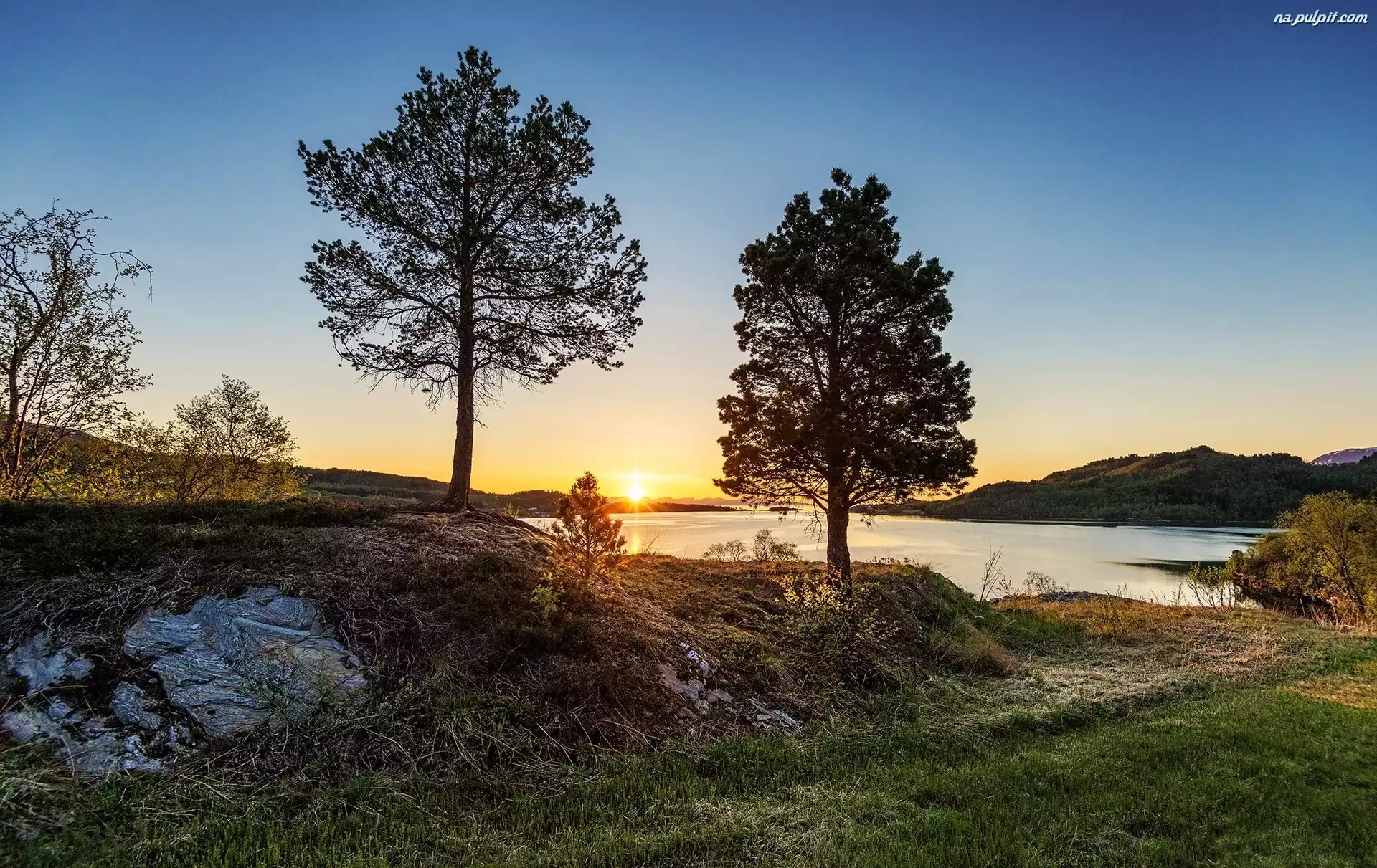 Drzewa, Słońca, Zachód, Dwa Na Pulpit