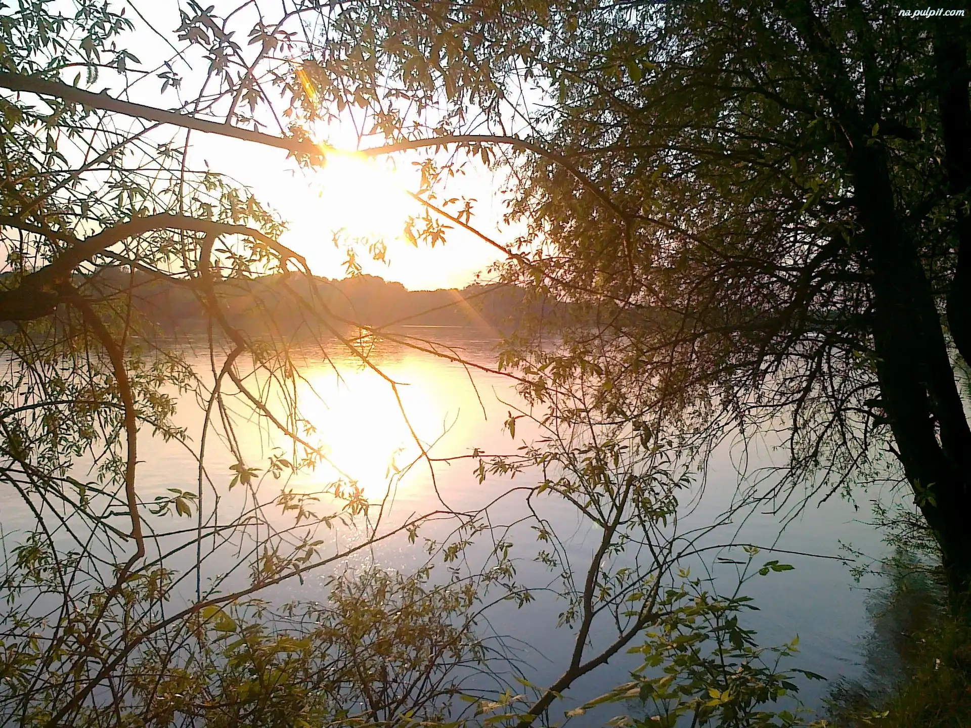 Drzewa, Słońca, Zachód, Jezioro Na Pulpit
