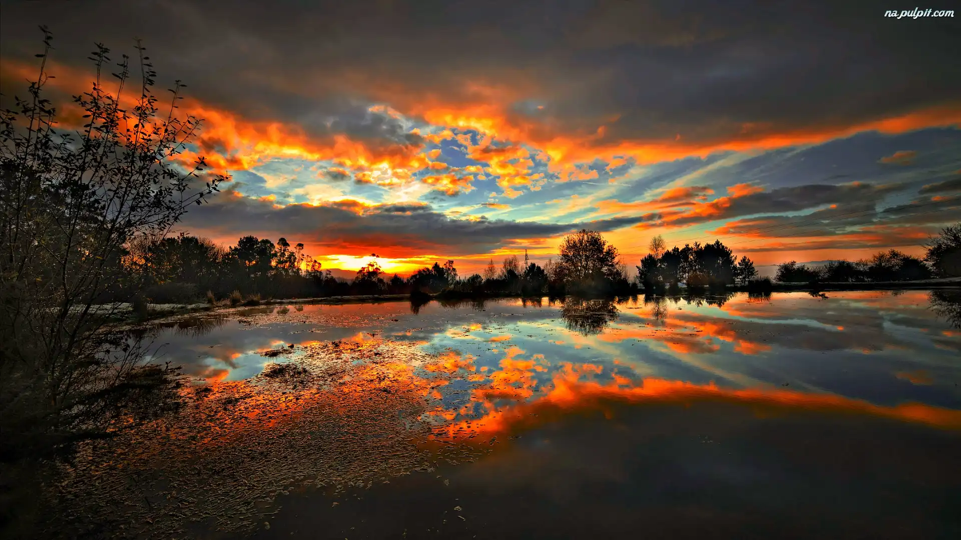 Drzewa, Słońca, Zachód, Jezioro Na Pulpit