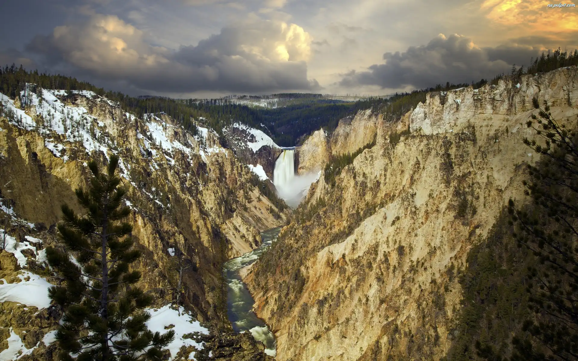 Drzewa, Słońca, Zachód, Skały Na Pulpit