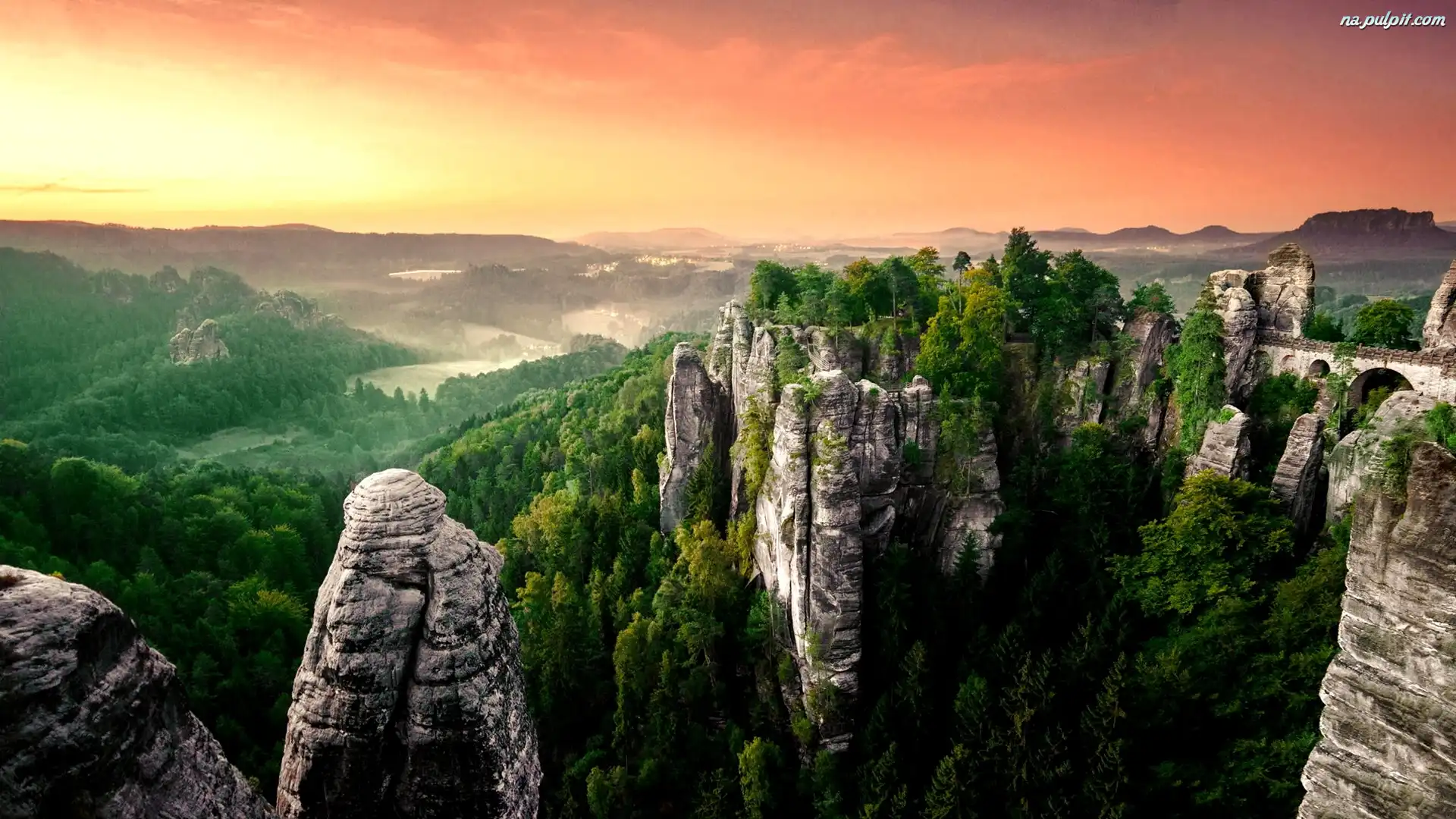 Drzewa, Słońca, Zachód, Skały Na Pulpit