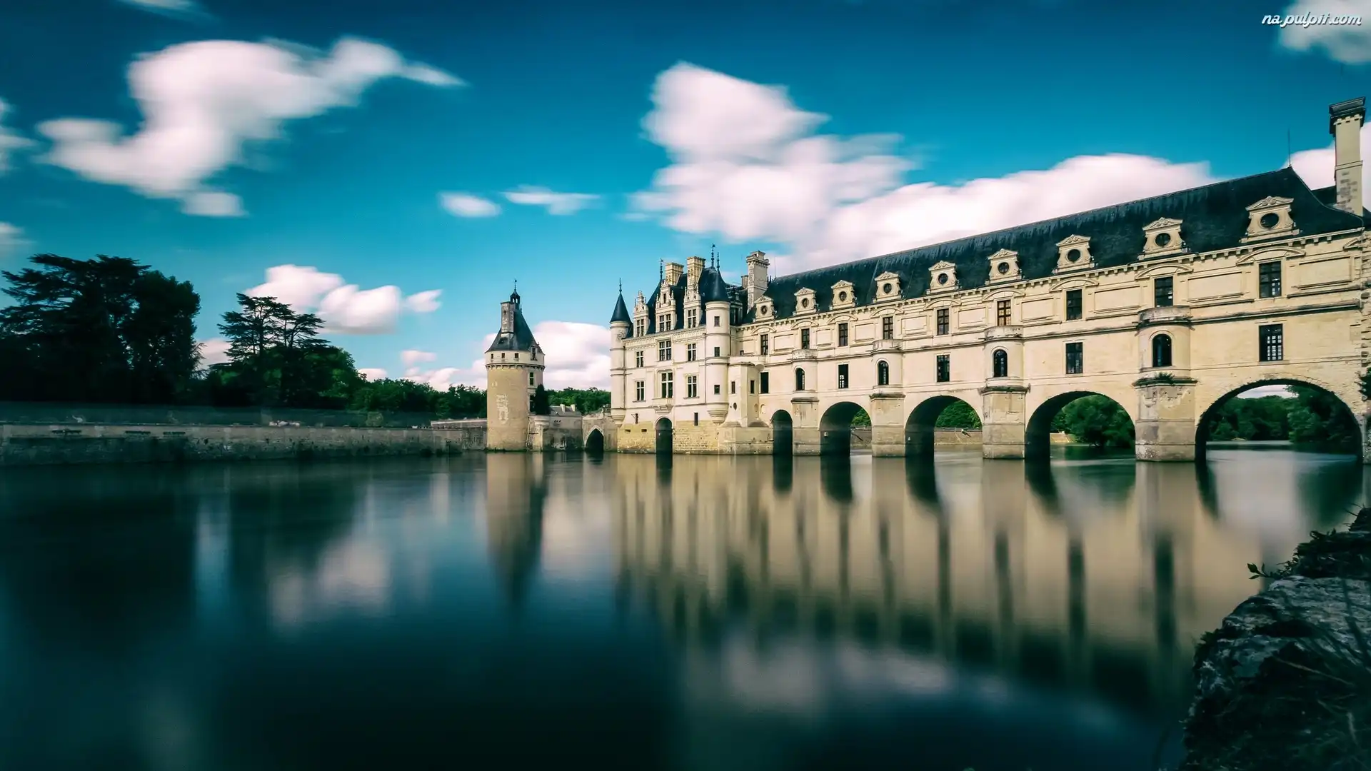 Drzewa, Rzeka, Zamek, Chmury Na Pulpit