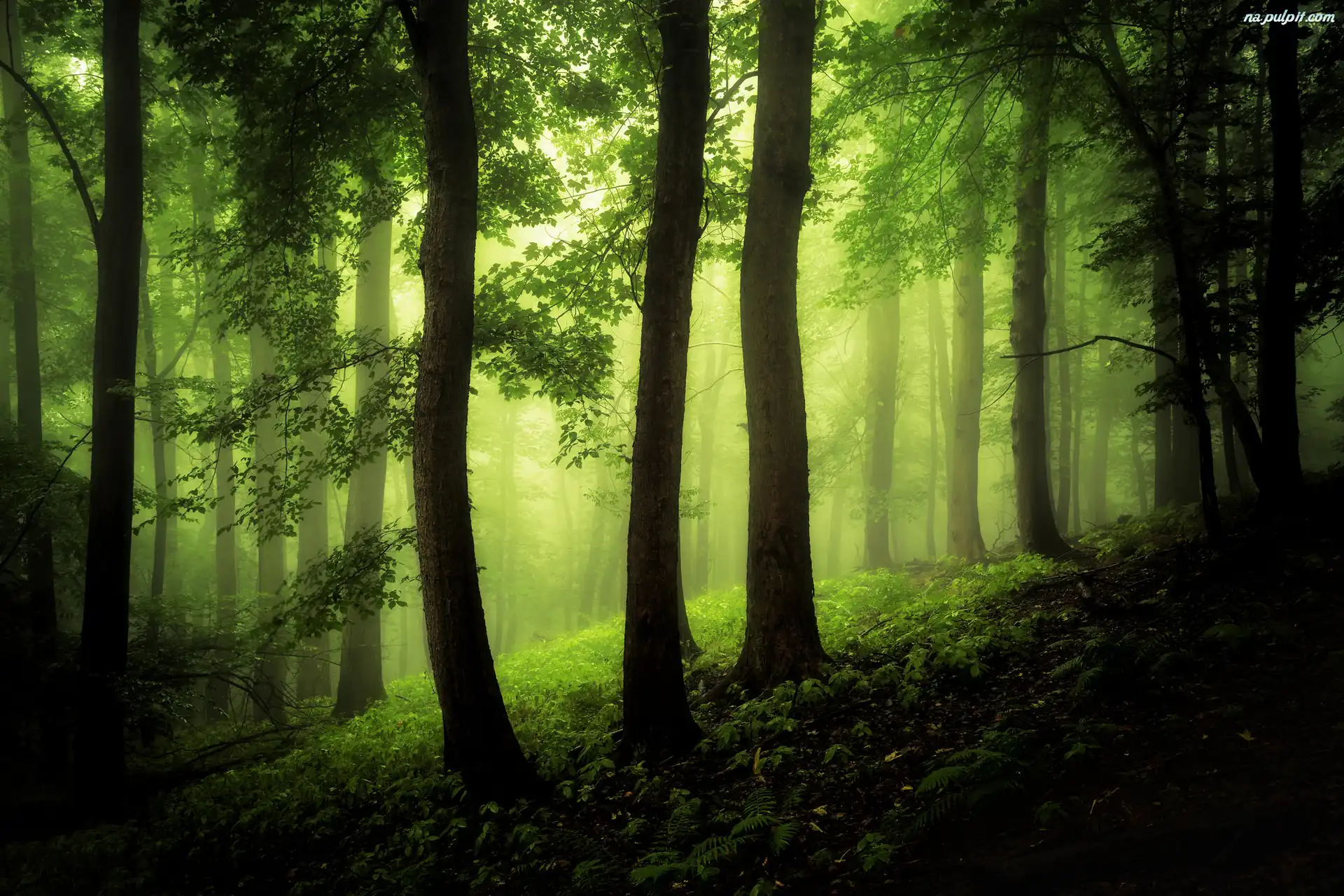 Drzewa, Las, Zielony, Mgła Na Pulpit