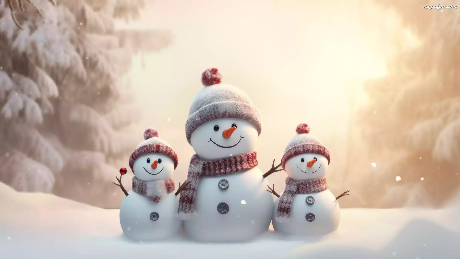 Zima, Trzy, Bałwanki, Drzewa Na Pulpit