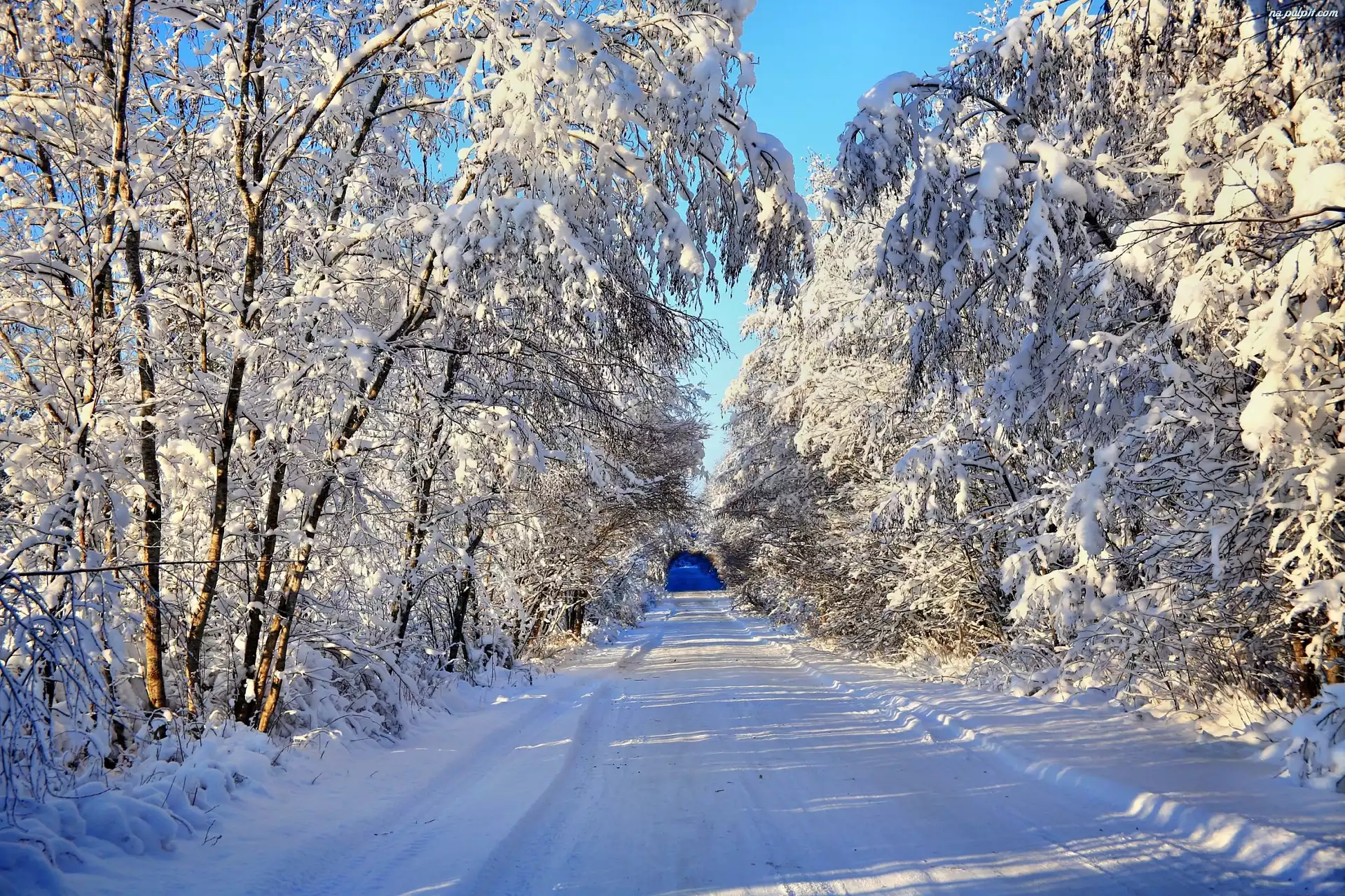 Drzewa, Droga, Zima, Ośnieżone Na Pulpit