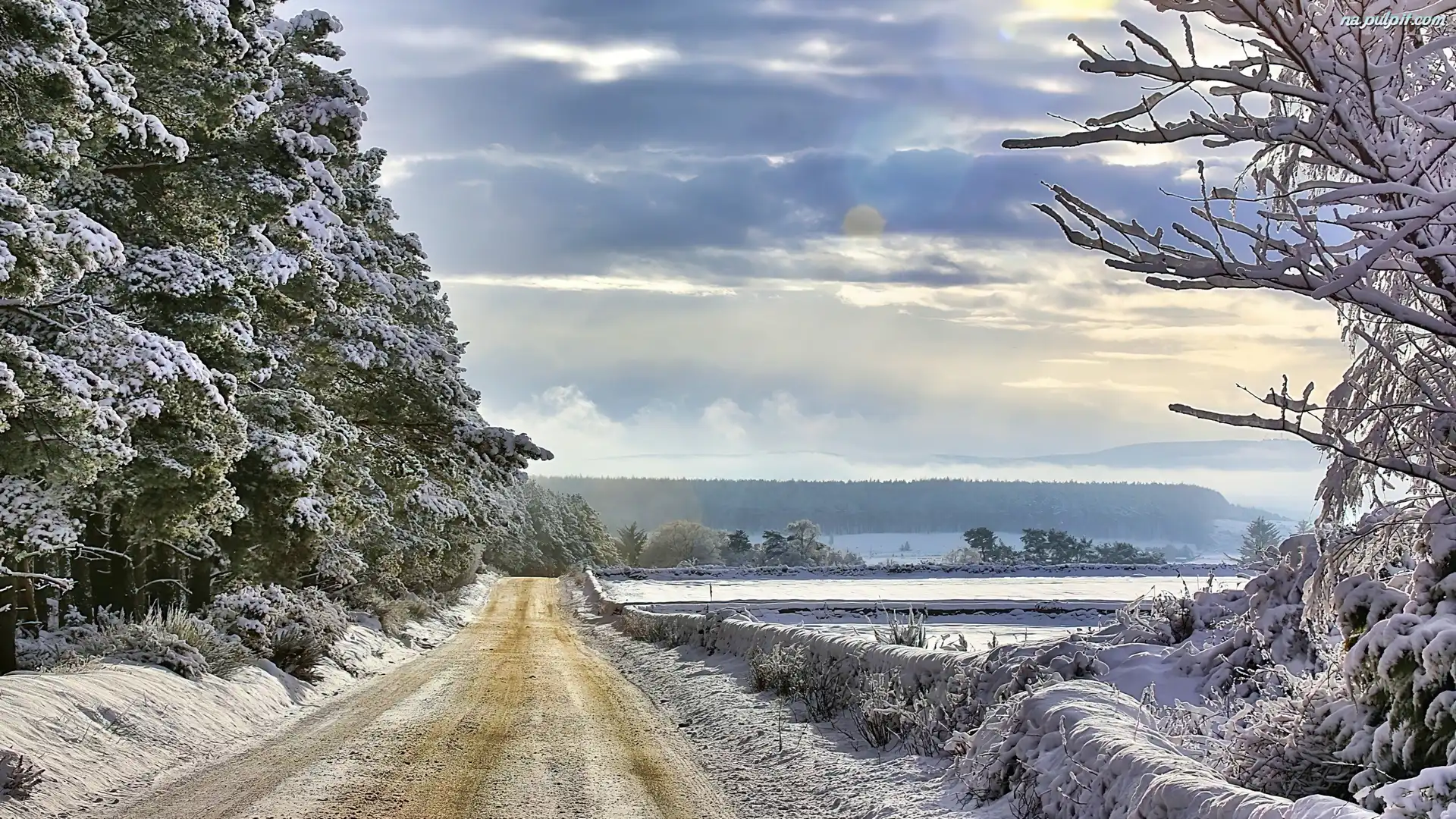 Drzewa, Droga, Zima, Oszronione Na Pulpit