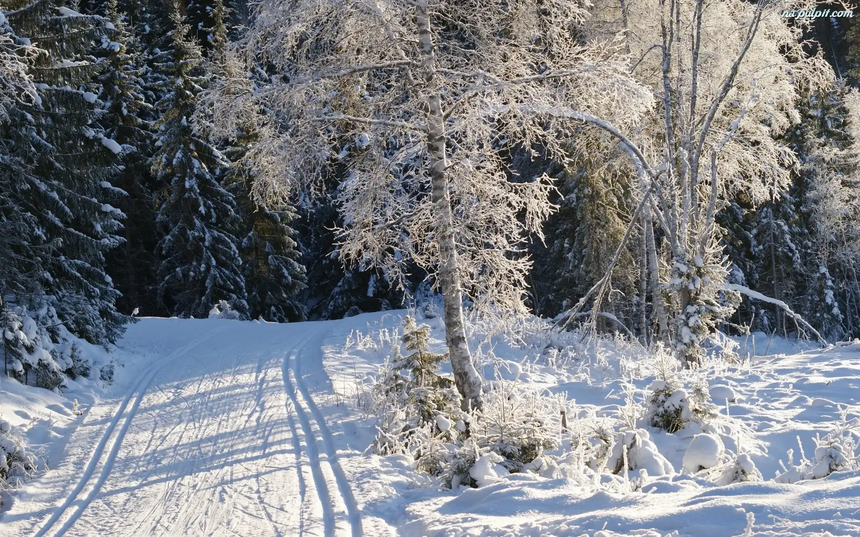Drzewa, Droga, Las, Zima, Ośnieżone Na Pulpit