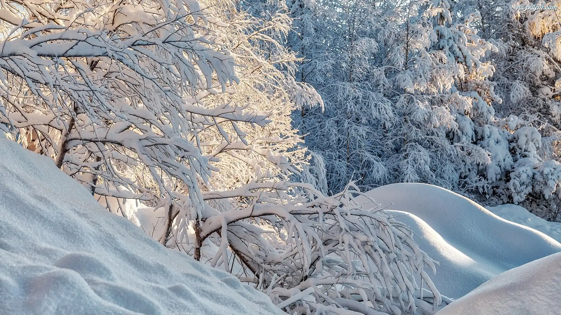 Drzewa, Pagórki, Śnieg, Las, Zima, Gałęzie Na Pulpit