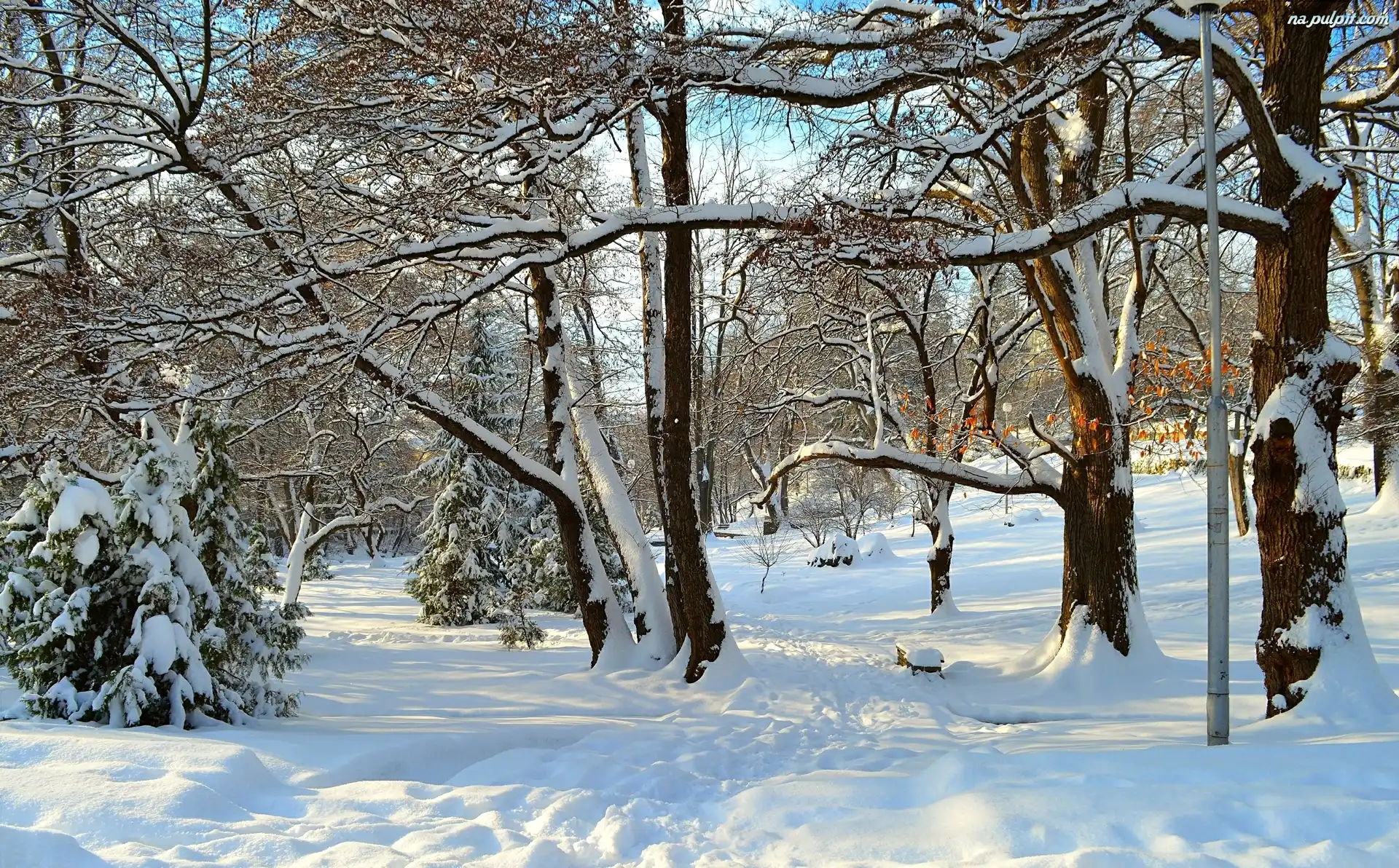 Drzewa, Park, Śnieg, Zima, Ośnieżone Na Pulpit