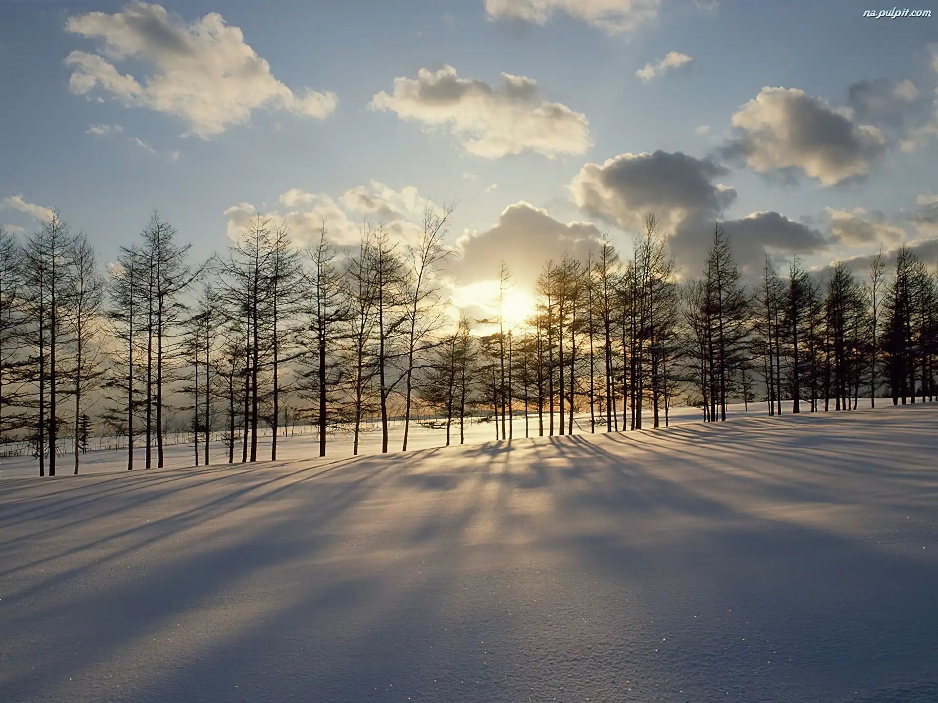 Drzewa, Przebijające, Zima, Światło Na Pulpit