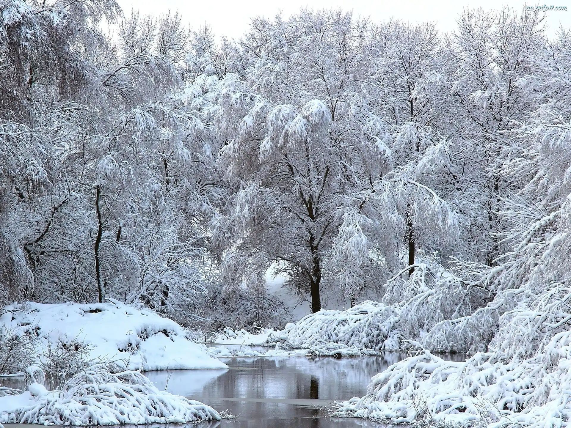 Zima, Rzeczka, Oszronione, Drzewa Na Pulpit