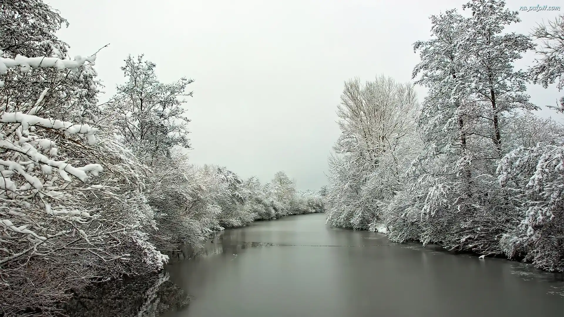 Drzewa, Rzeka, Zima, Oszronione Na Pulpit