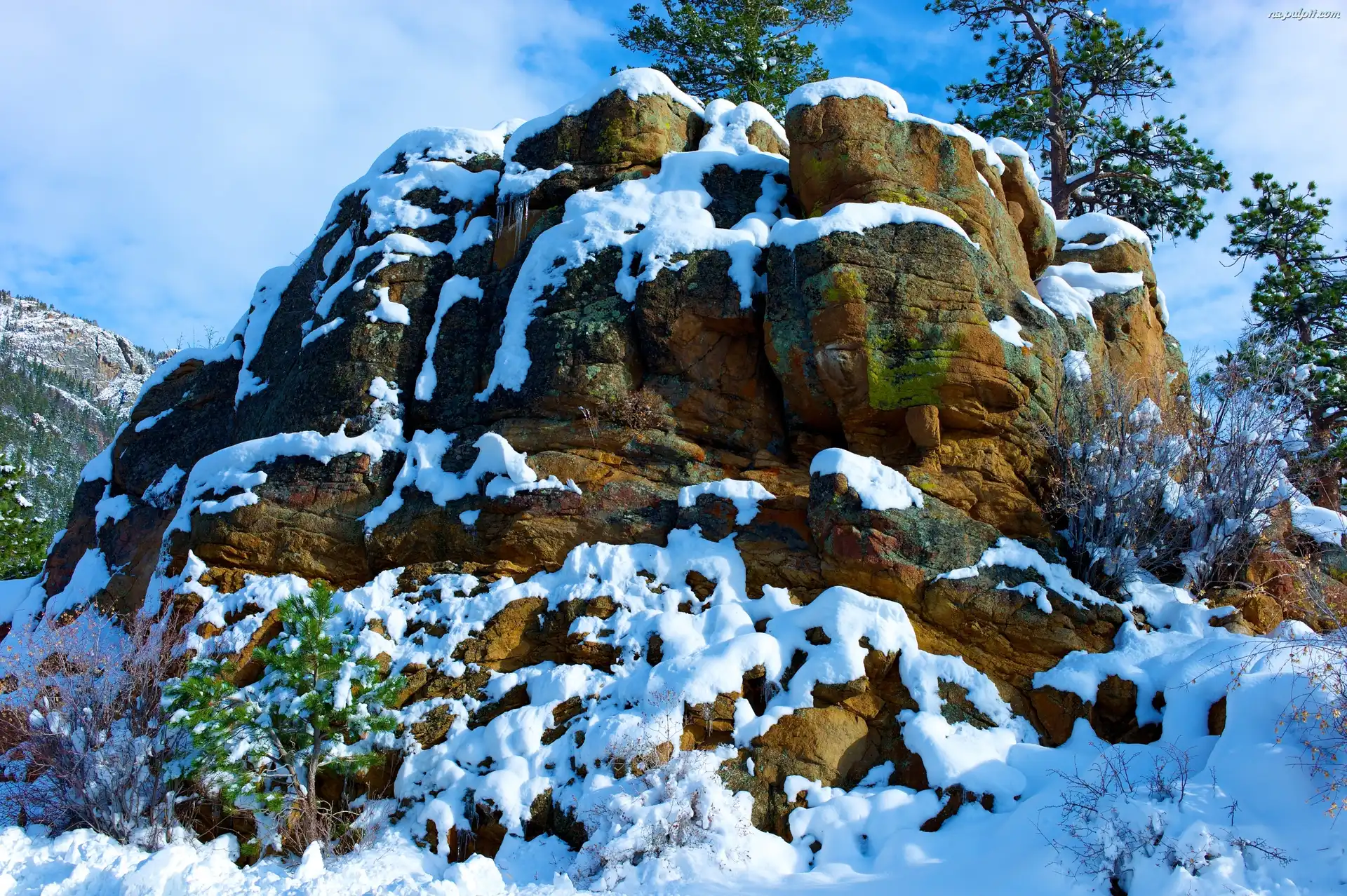 Drzewa, Skały, Zima, Śnieg Na Pulpit
