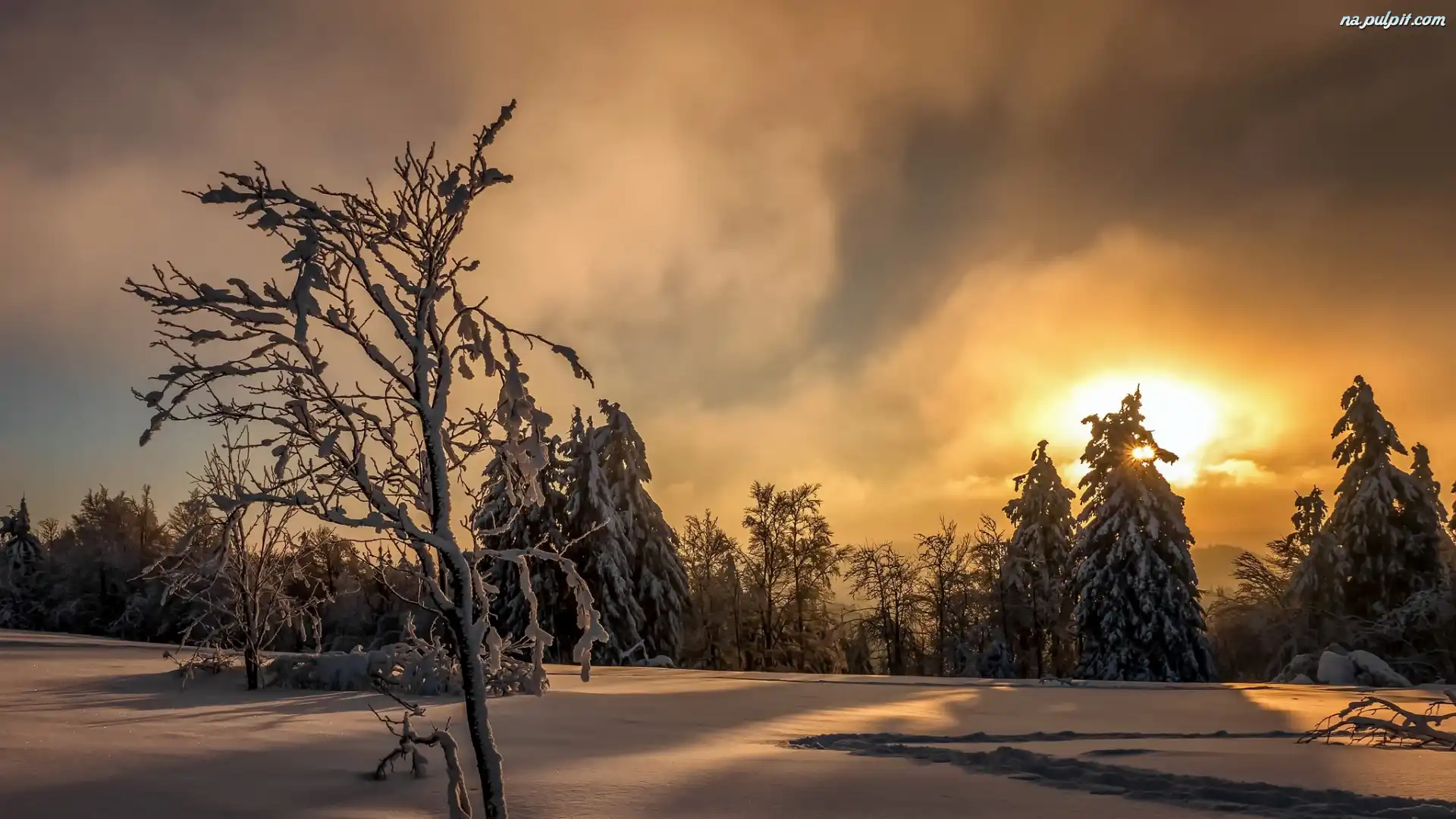 Drzewa, Wschód Słońca, Zima, Las Na Pulpit