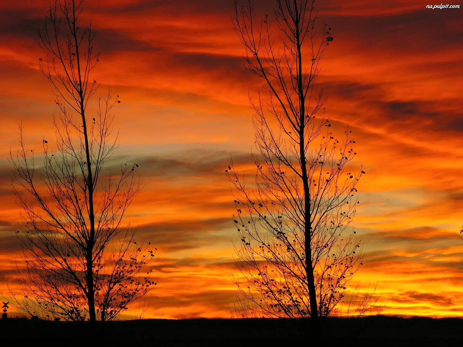 Drzewka, Dwa, Słońca, Zachód, Samotne Na Pulpit
