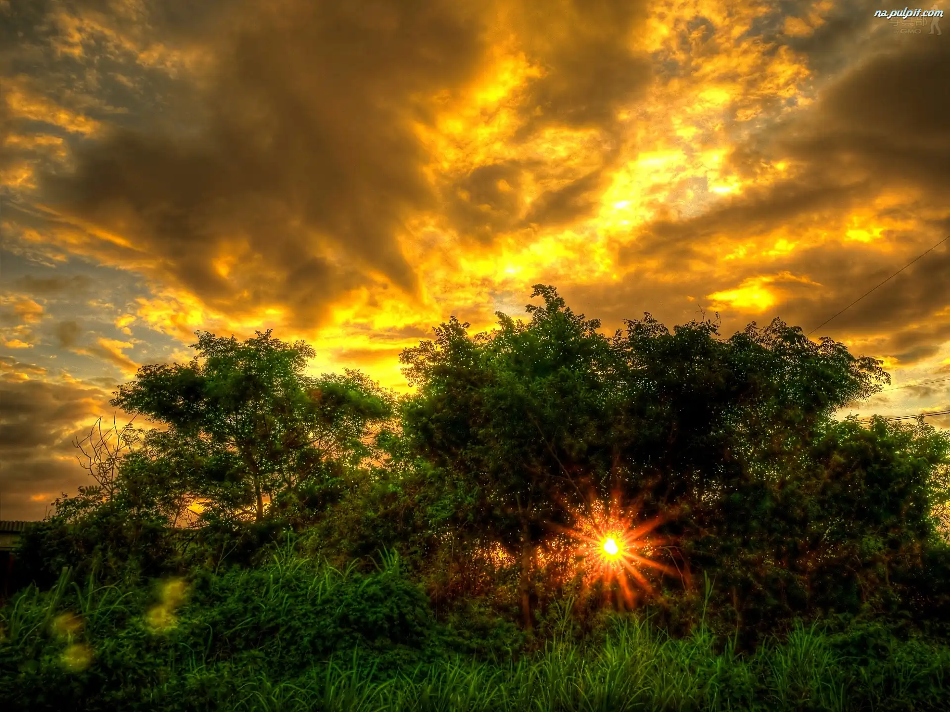 Drzewka, Słońca, Zachód, Promienie Na Pulpit
