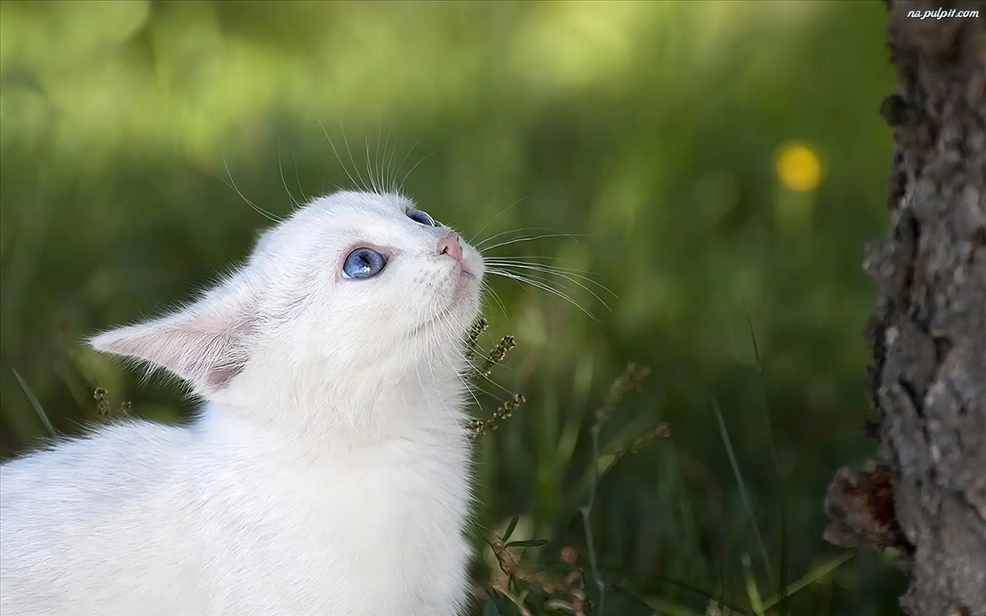 Drzewo, Niebieskie, Kot, Biały, Oczy Na Pulpit