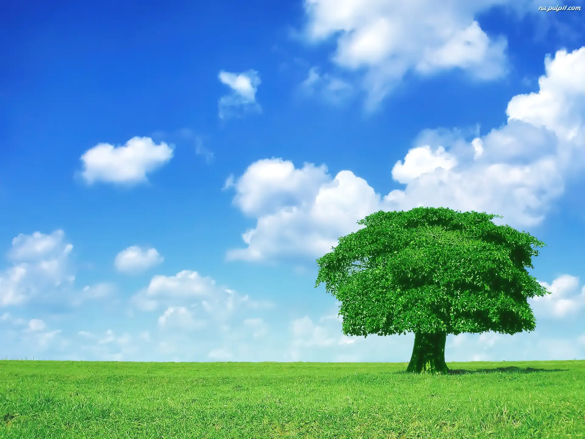 Chmury, Drzewo, Łąka Na Pulpit