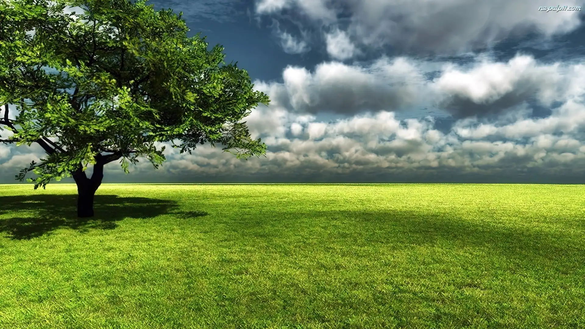 Chmury, Drzewo, Polana