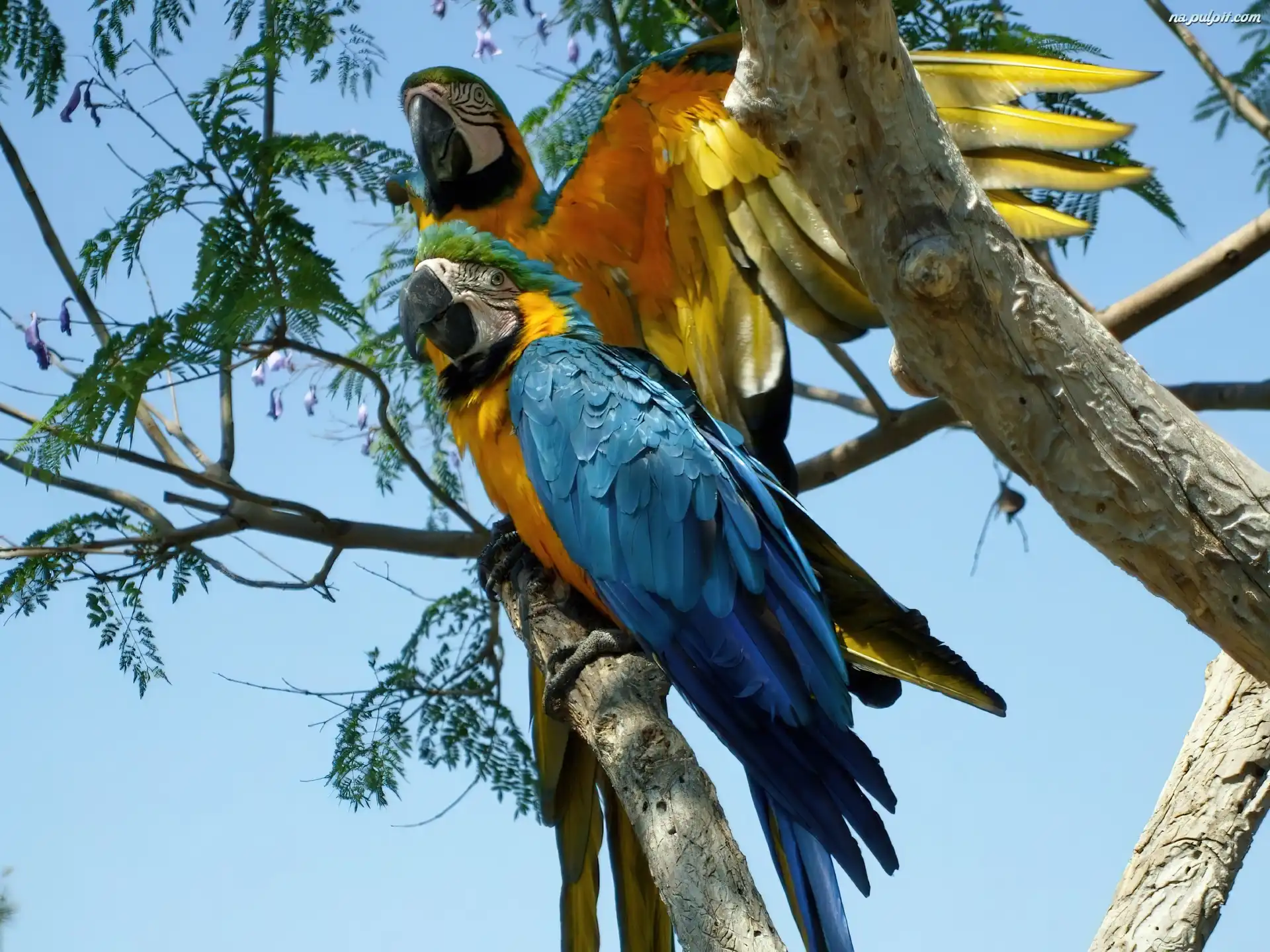 Drzewo, Papugi, Dwie, Ara Na Pulpit