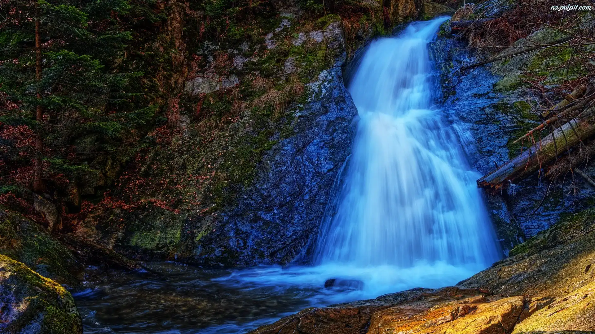 Czechy, Resov Falls, Horni Mesto, Rośliny, Skały, Wodospad, Drzewo Na Pulpit
