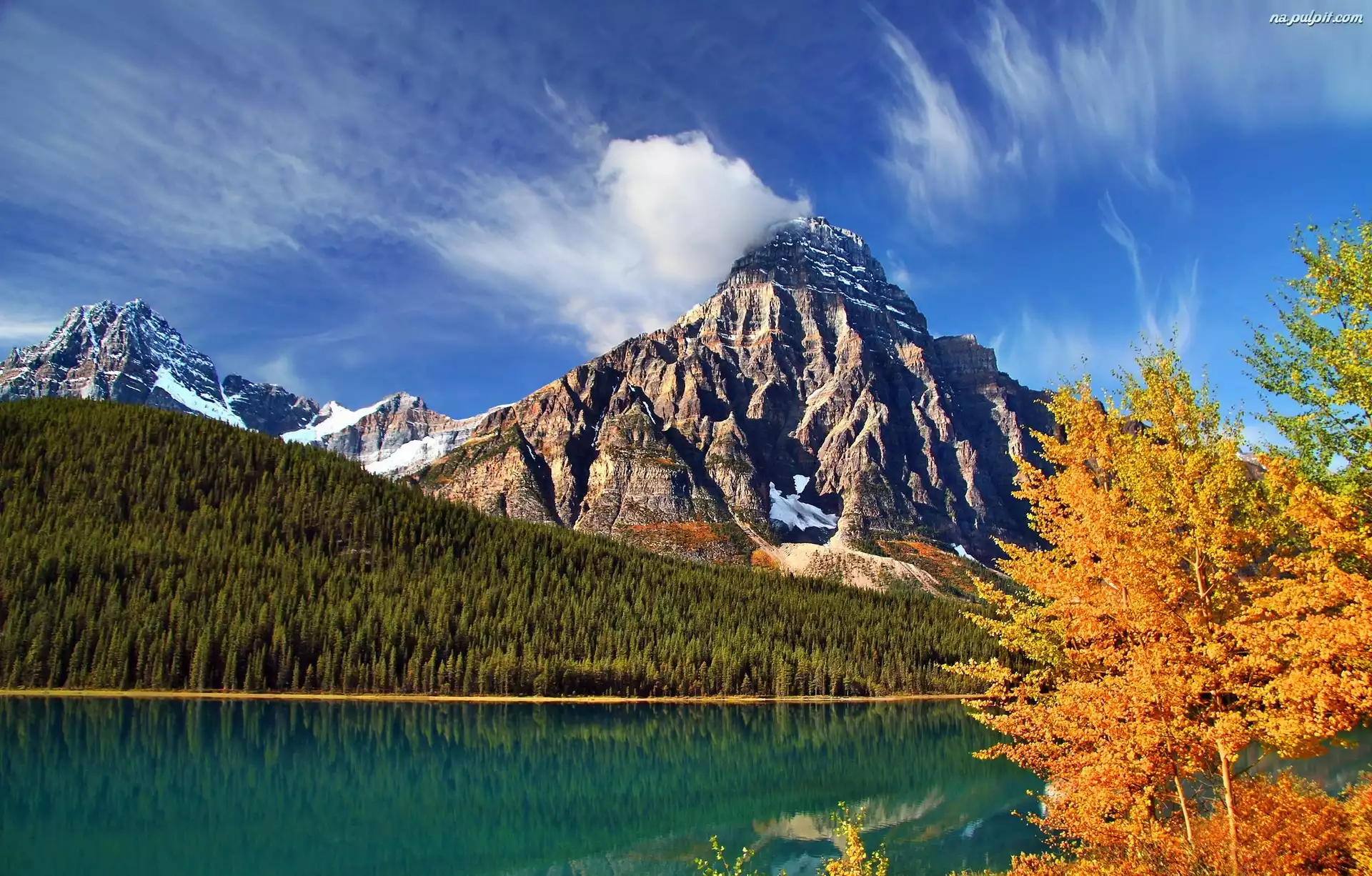 Drzewo, Jezioro, Lasy, Góry, Jesienne