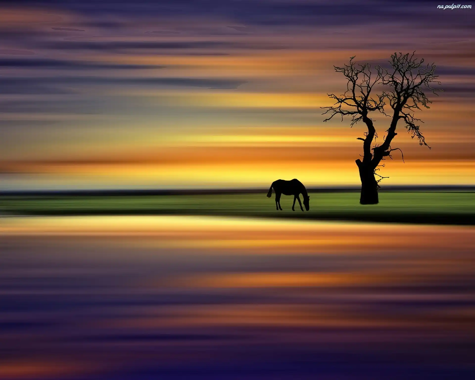 Drzewo, Komputerowa, Grafika, Koń Na Pulpit