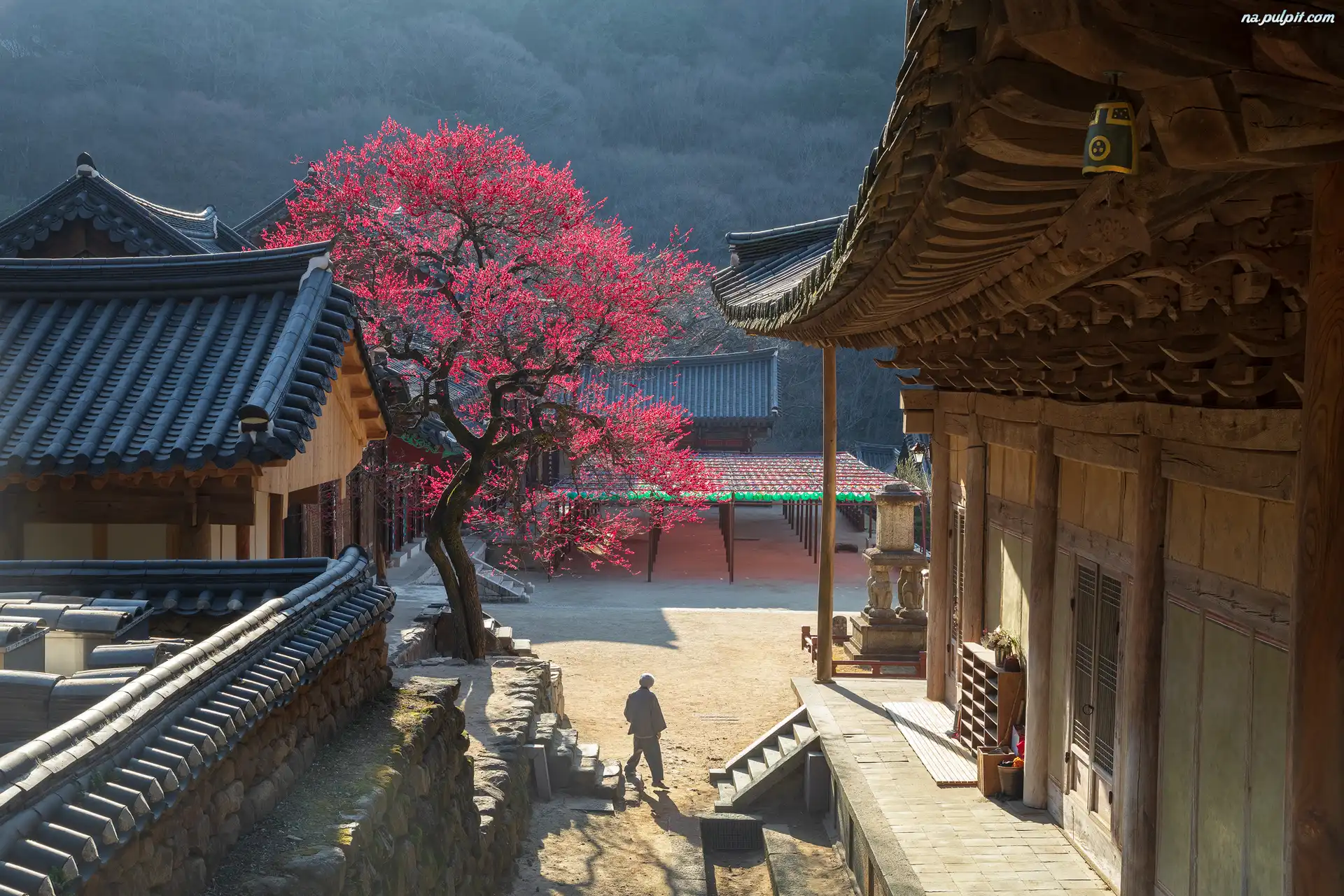 Korea Południowa, Buddyjska, Hrabstwo Gurye, Kwitnące, Hwaom sa, Świątynia, Drzewo Na Pulpit