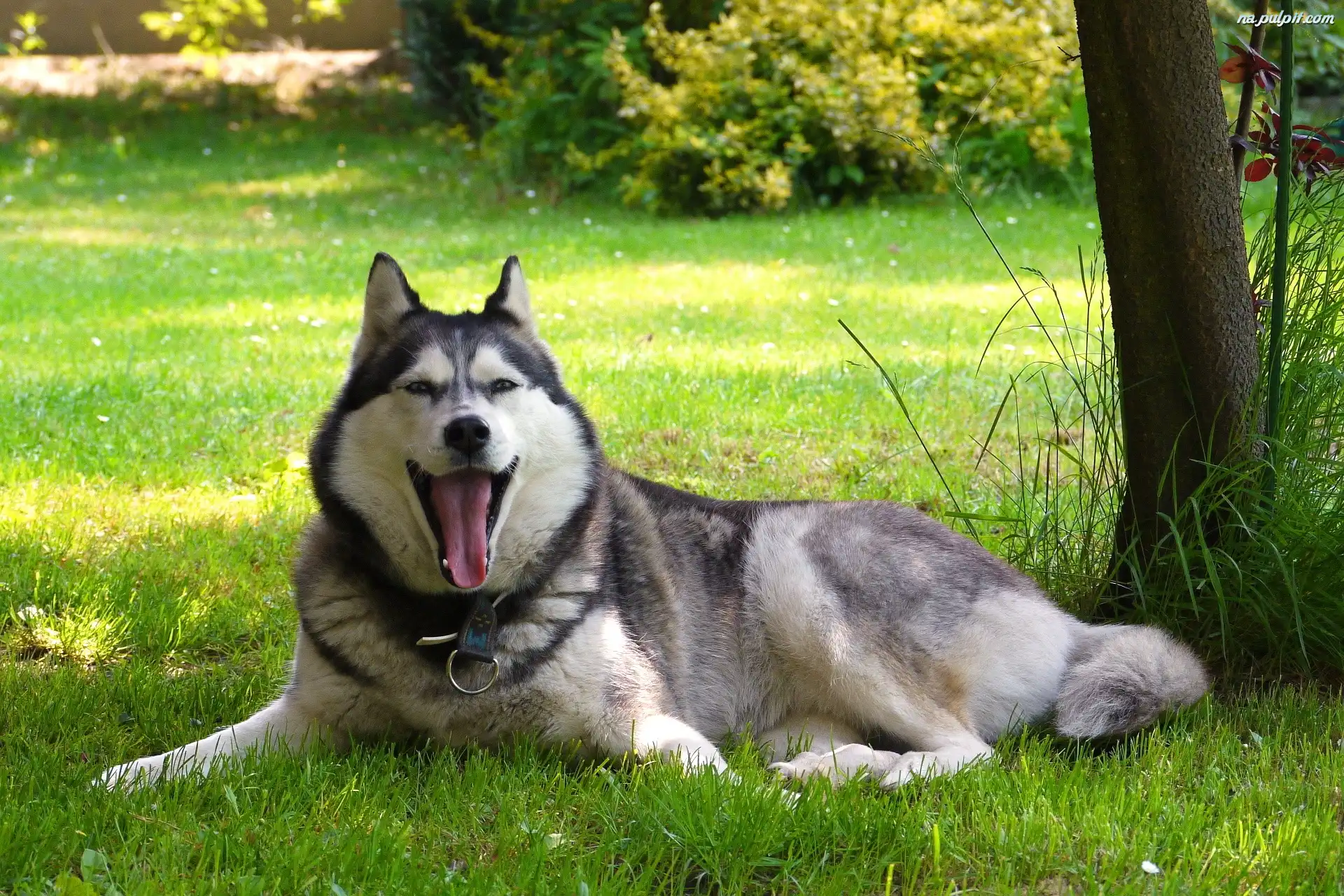 Drzewo, Język, Husky, Trawa Na Pulpit