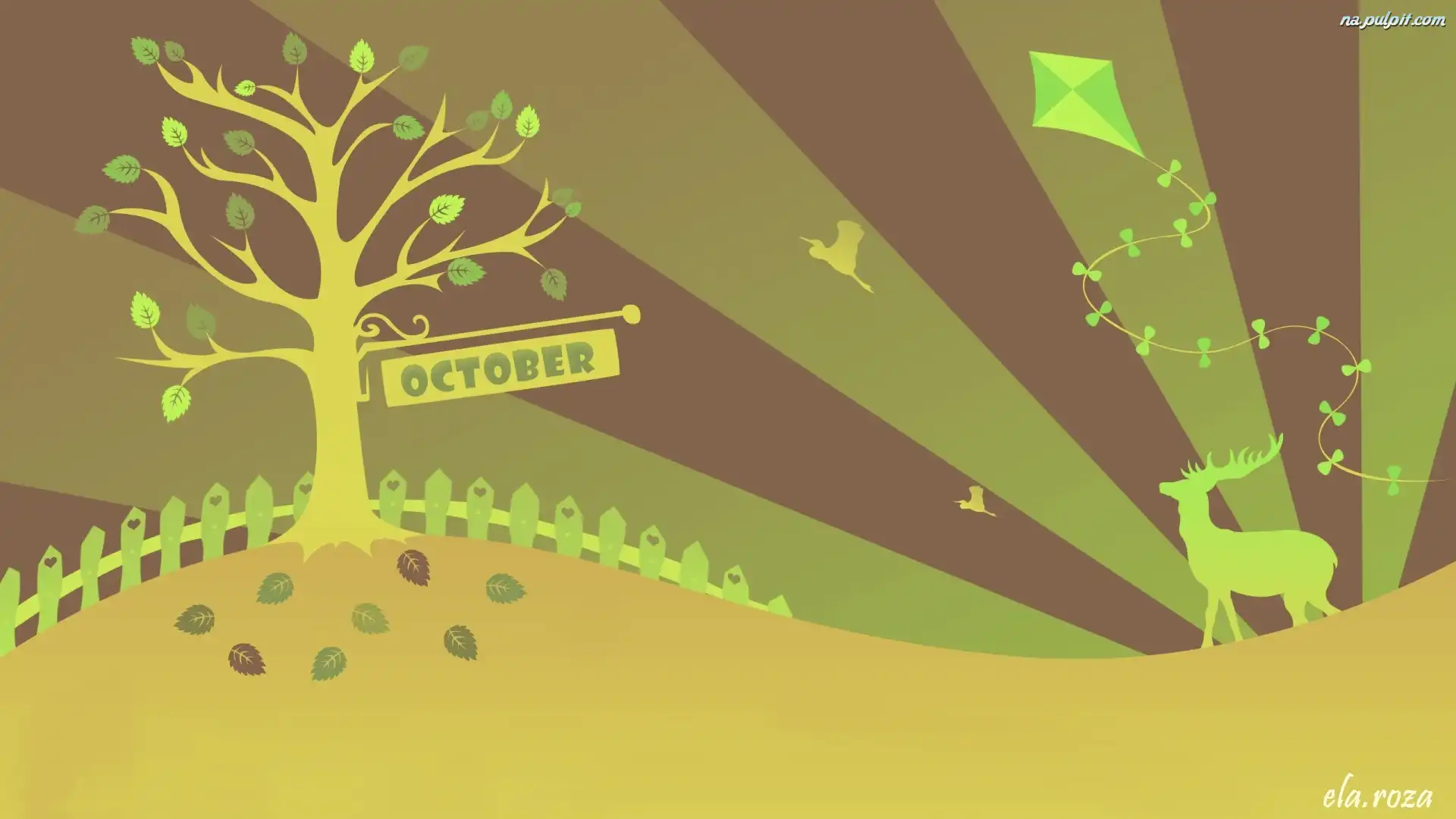 Drzewo, Jeleń, Grafika, Opadające, Jesień, Liście Na Pulpit