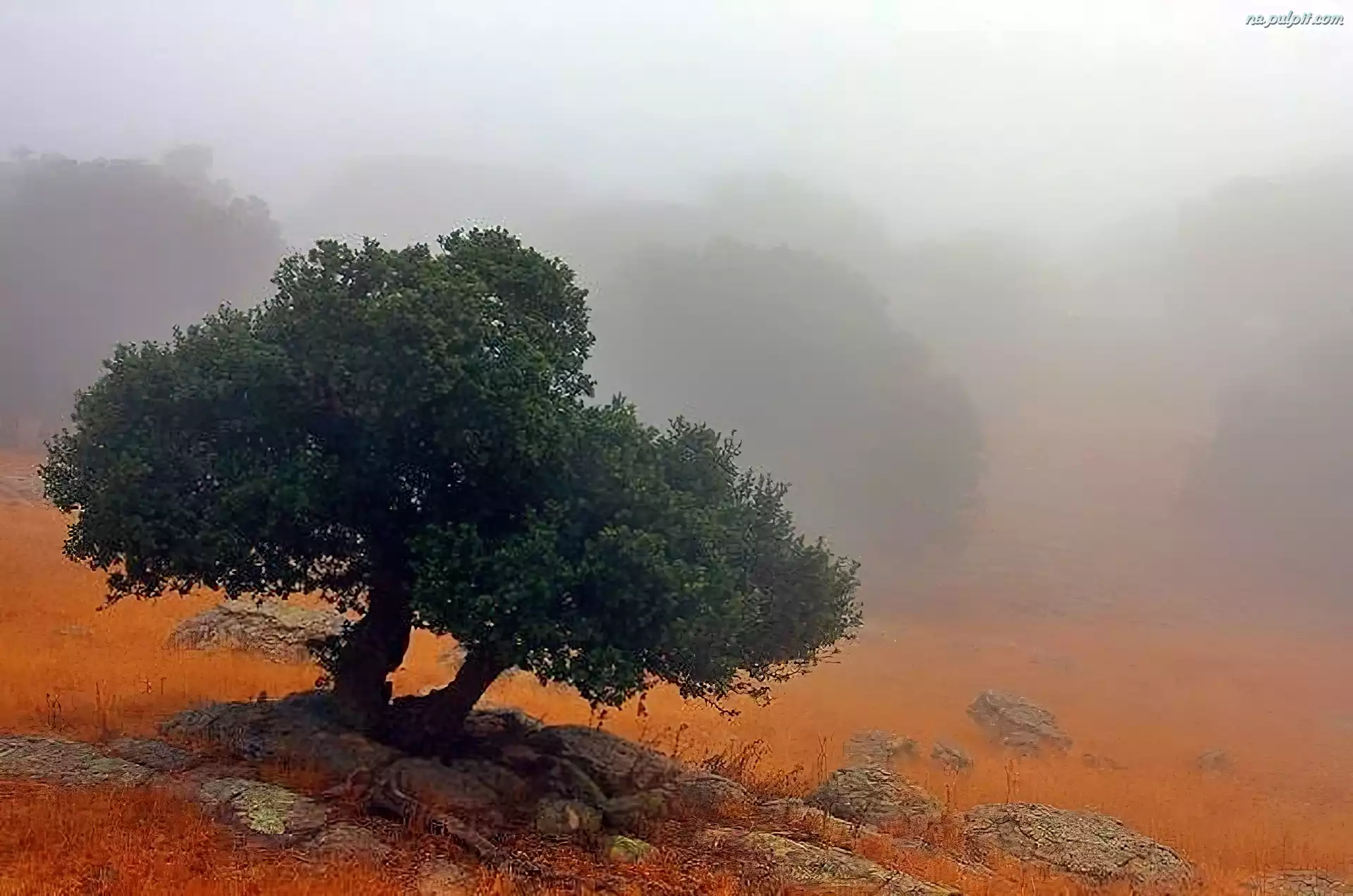 Kamienie, Drzewo, Mgła