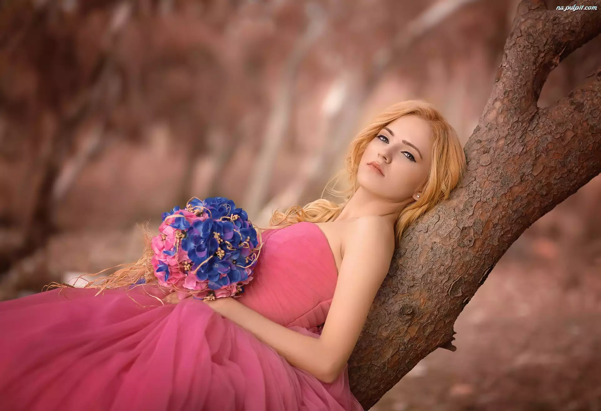 Drzewo, Suknia, Różowa, Kobieta, Bukiet Na Pulpit