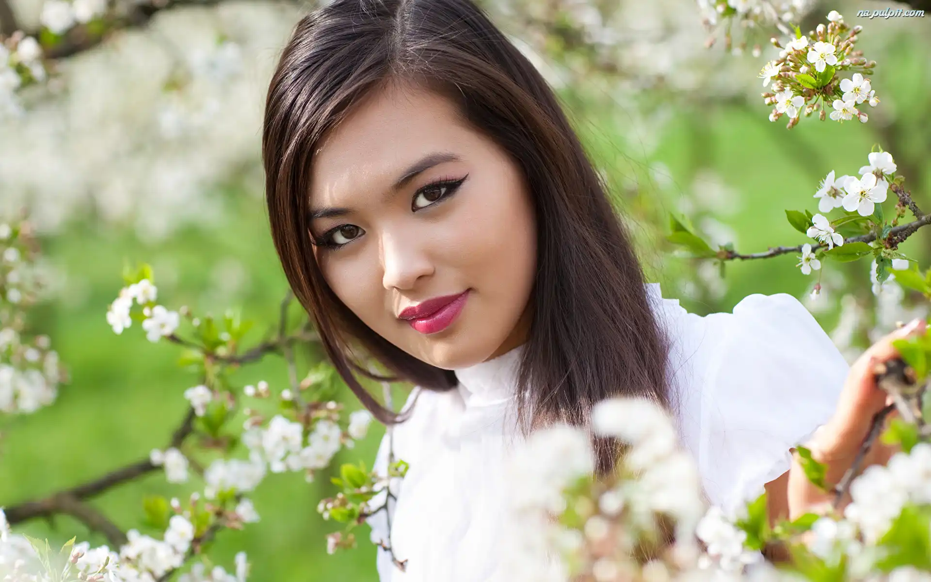 Drzewo owocowe, Szatynka, Azjatka, Kobieta, Gałązki Na Pulpit