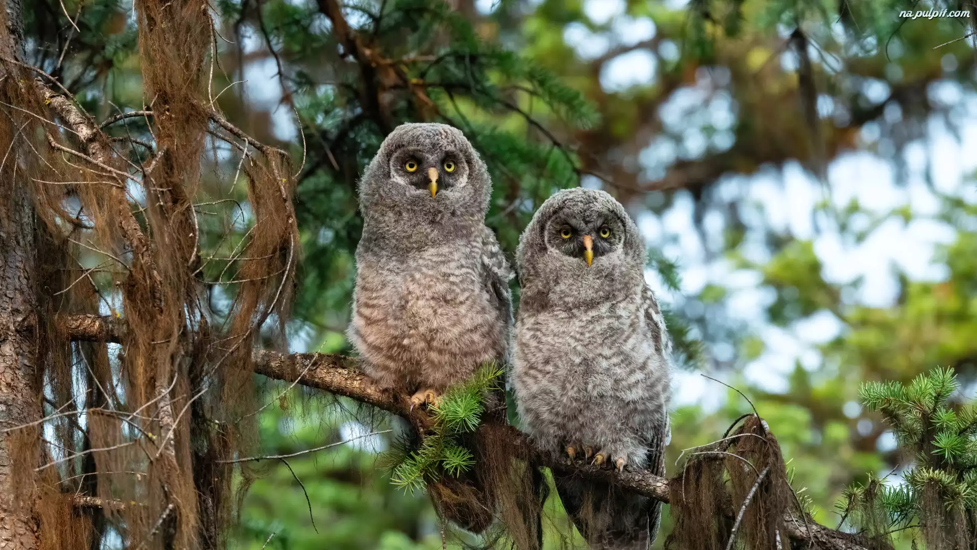 Gałęzie, Dwie, Puszczyki, Drzewo, Sowy, Konar