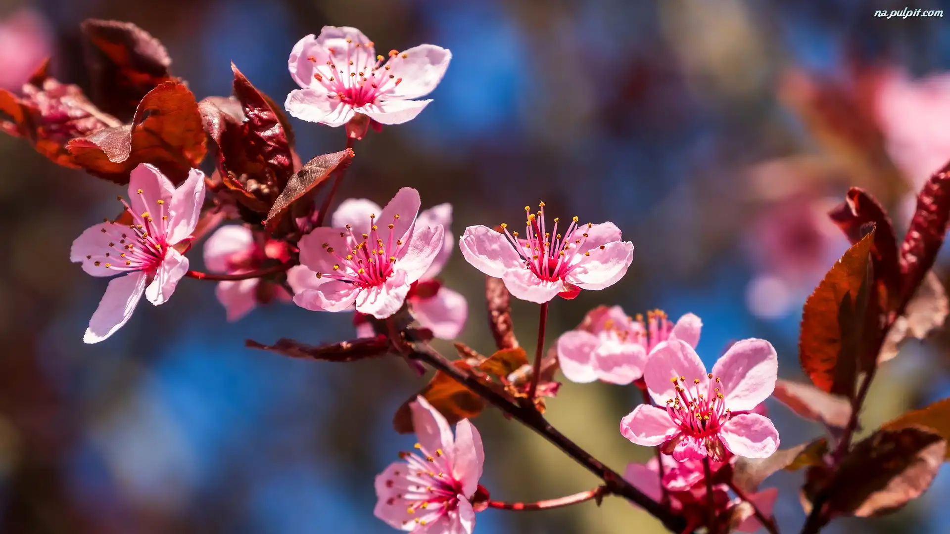 Liście, Drzewo owocowe, Śliwa, Różowe, Gałązka, Kwiaty Na Pulpit