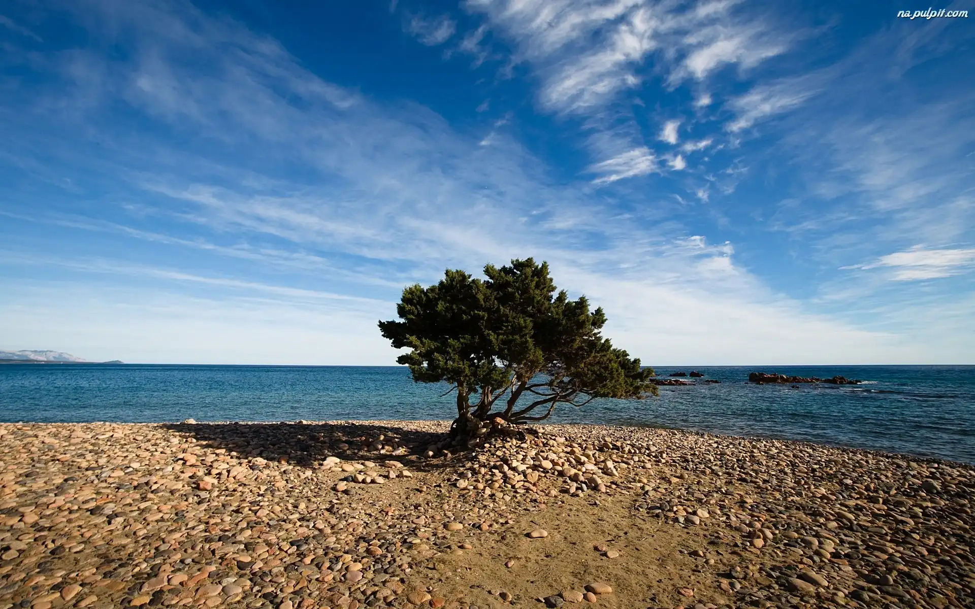 Drzewo, Kamienna, Morze, Plaża Na Pulpit