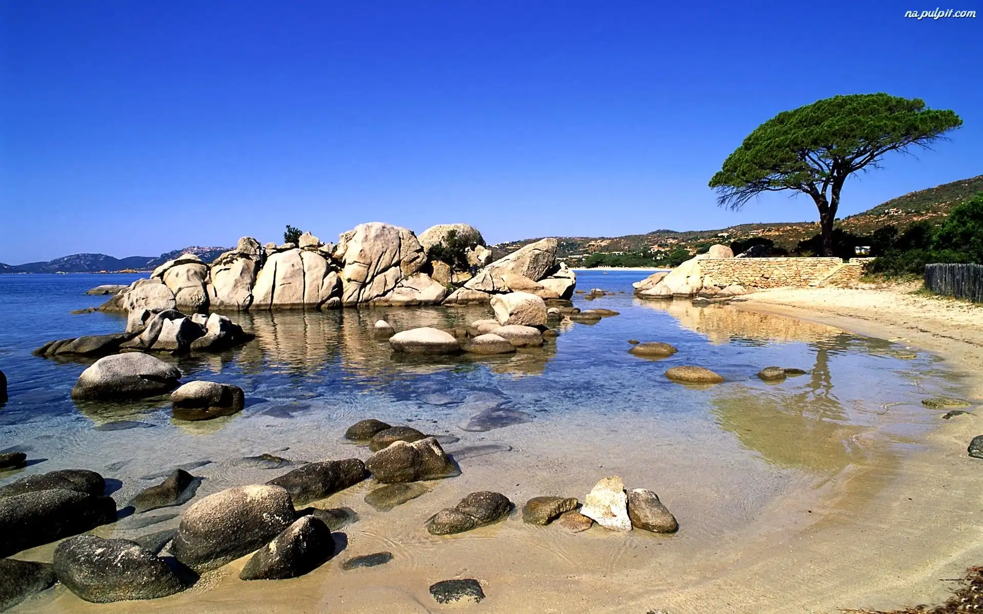Drzewo, Skały, Morze, Brzeg Na Pulpit