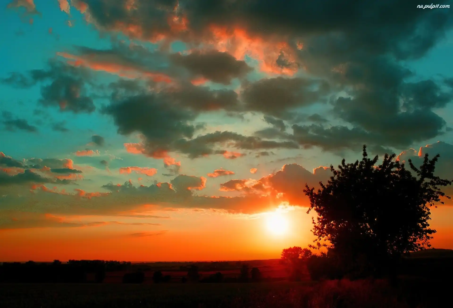 Drzewo, Chmury, Niebo, Pole Na Pulpit