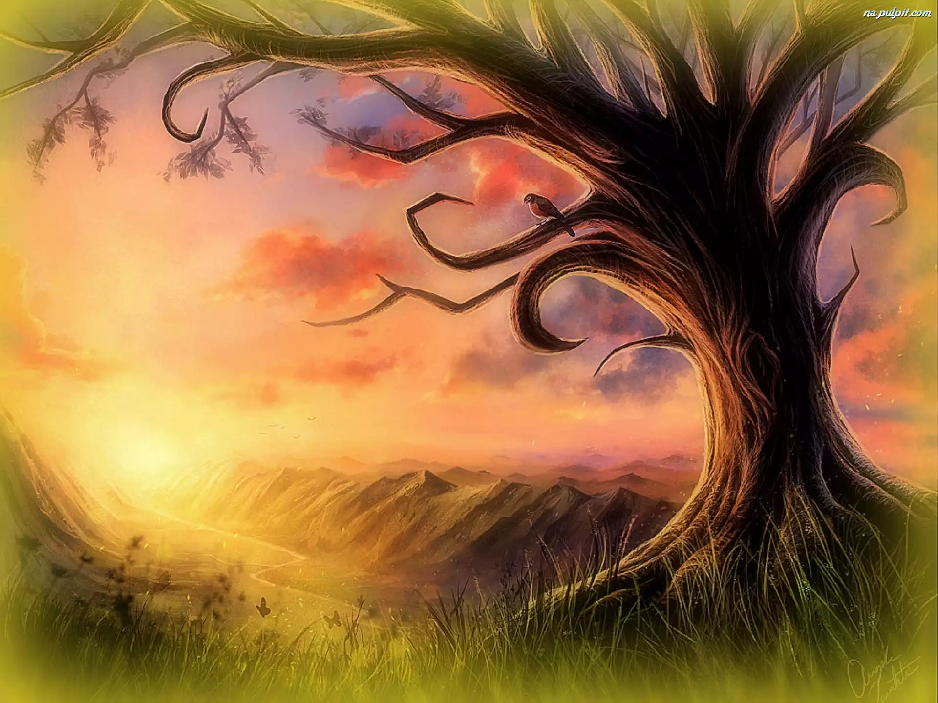 Niebo, Drzewo, Trawa Na Pulpit