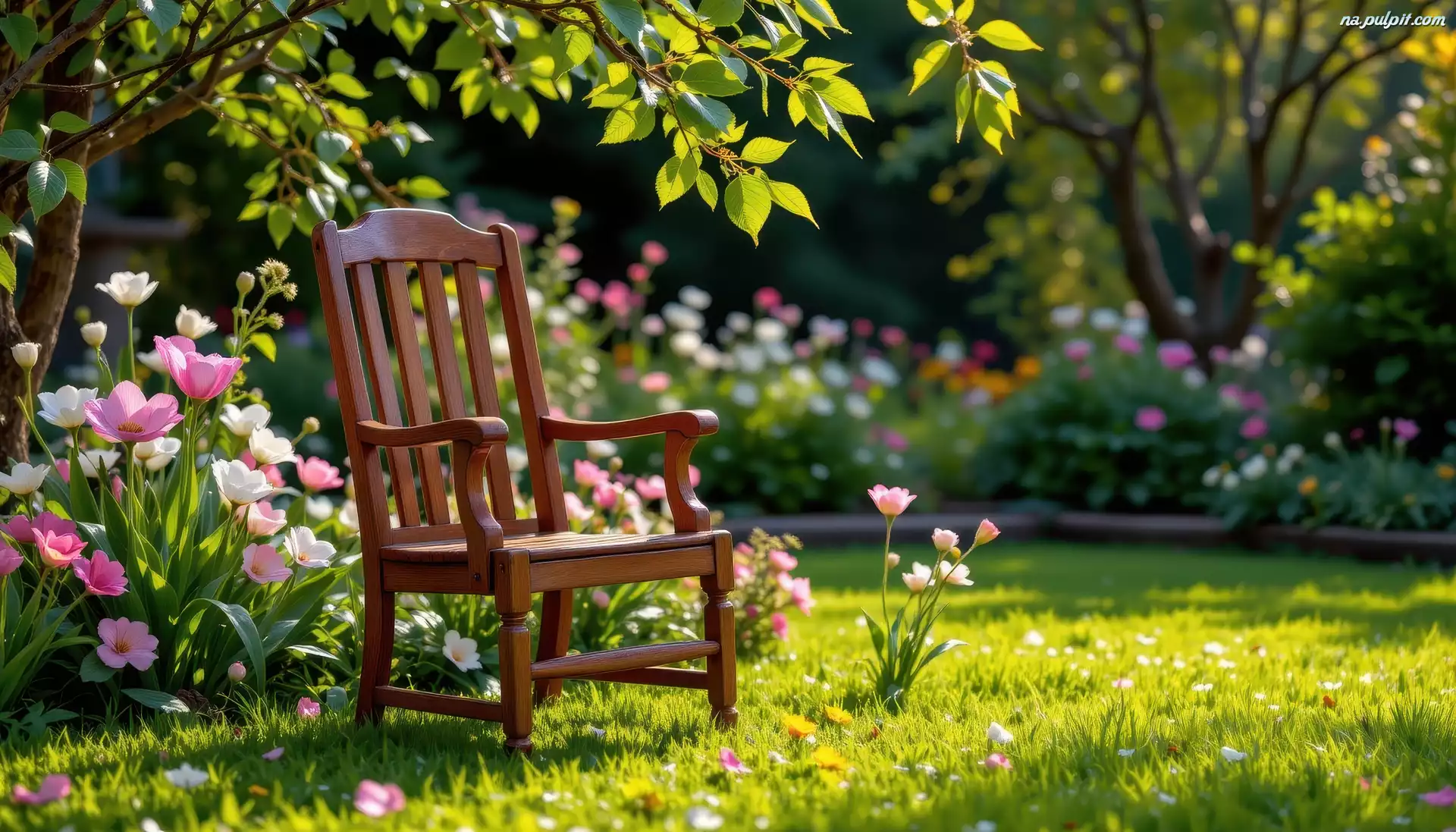 Ogród, Krzesło, Kwiaty, Drzewo Na Pulpit