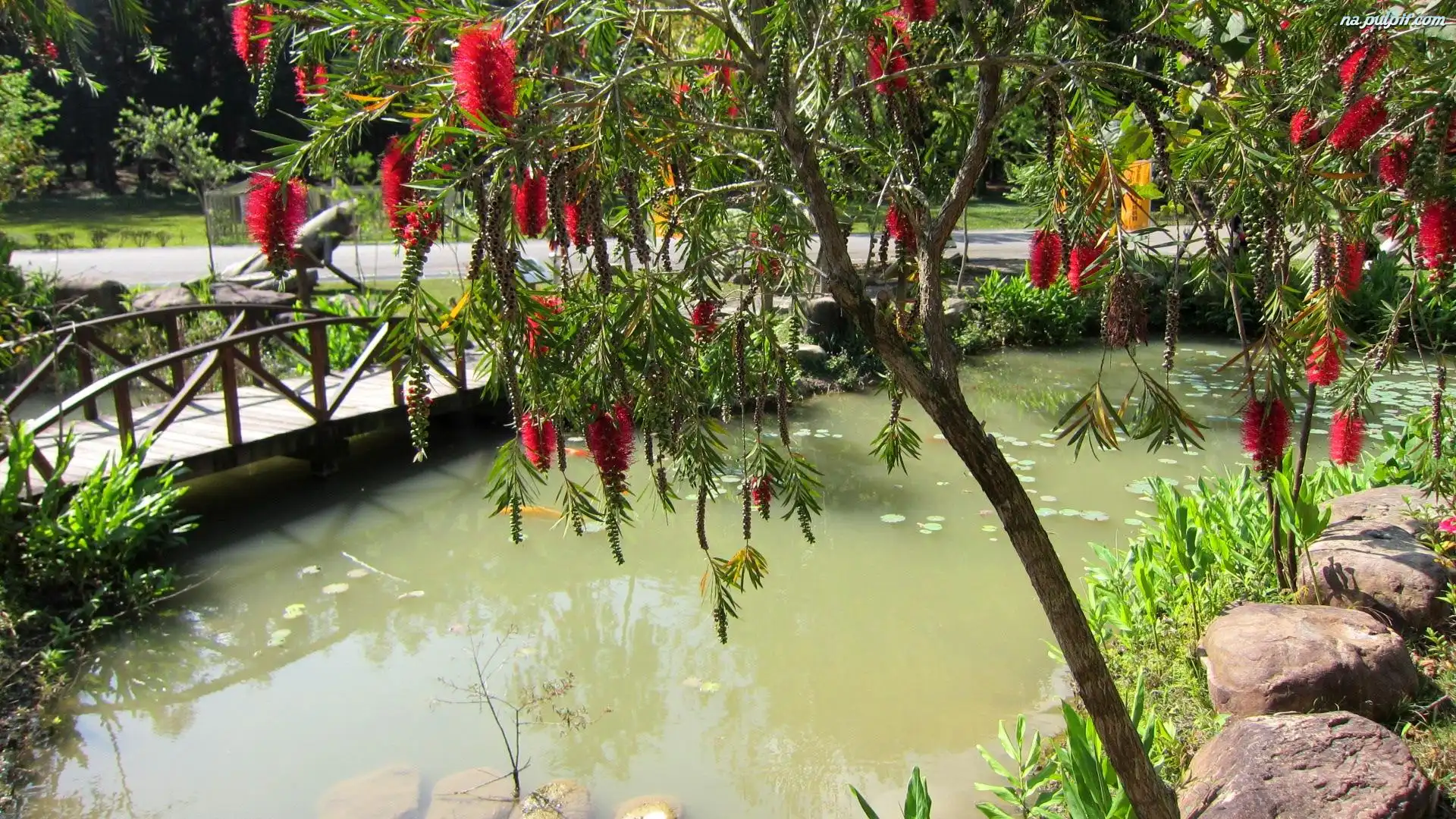 Drzewo, Mostek, Staw, Park, Kwitnące Na Pulpit
